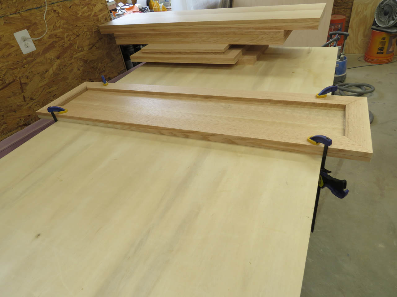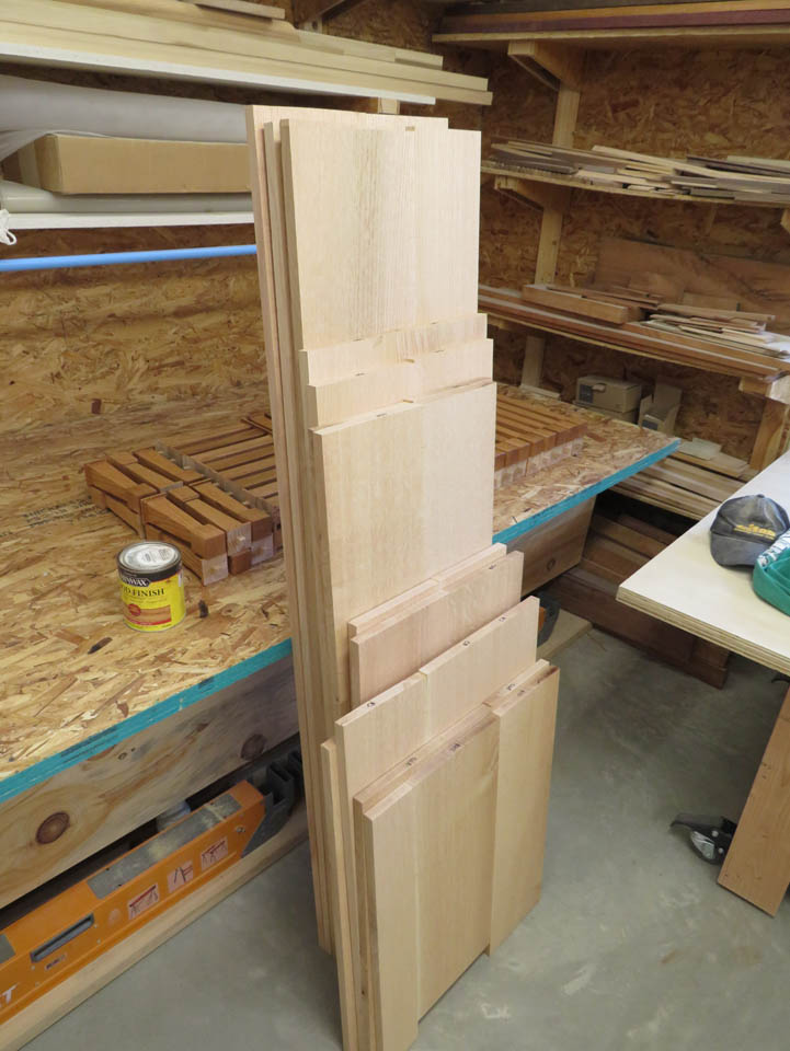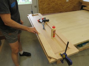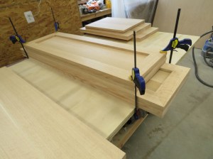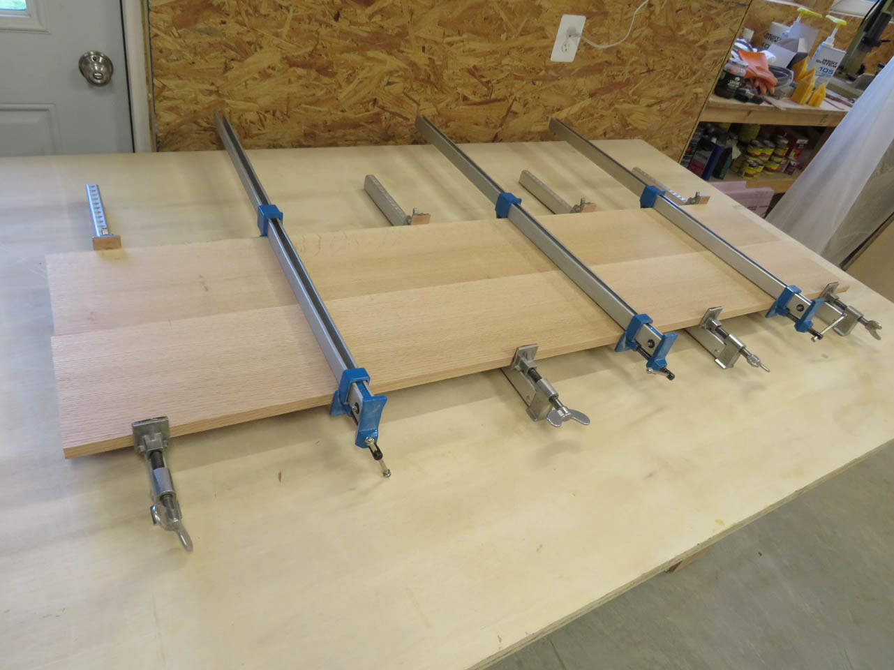 I can only do two or three panels at a time so I spent the day doing a couple of glue-ups, then waiting an hour or two for them to dry before gluing up the next batch.