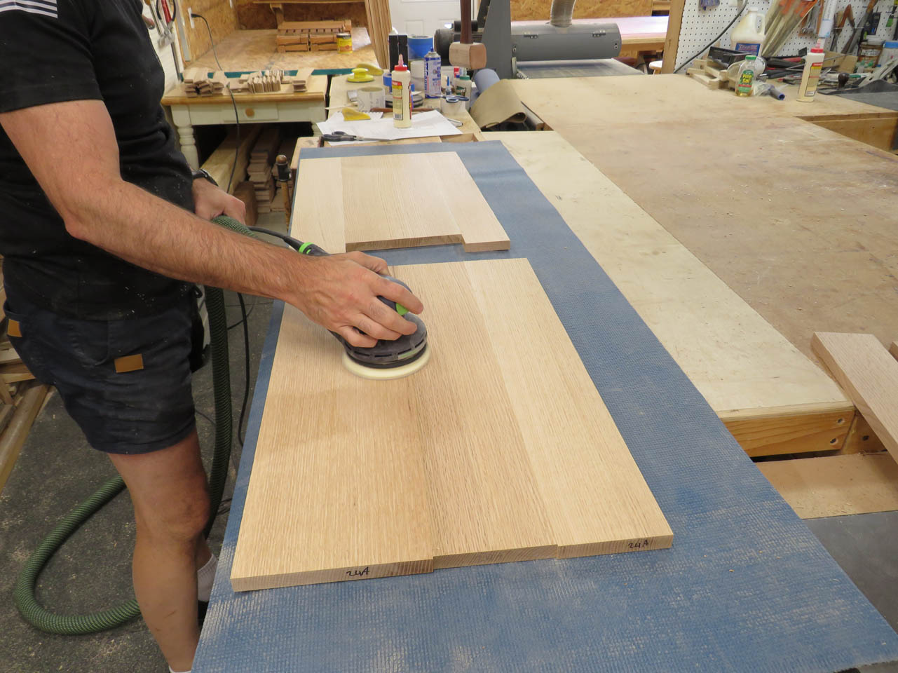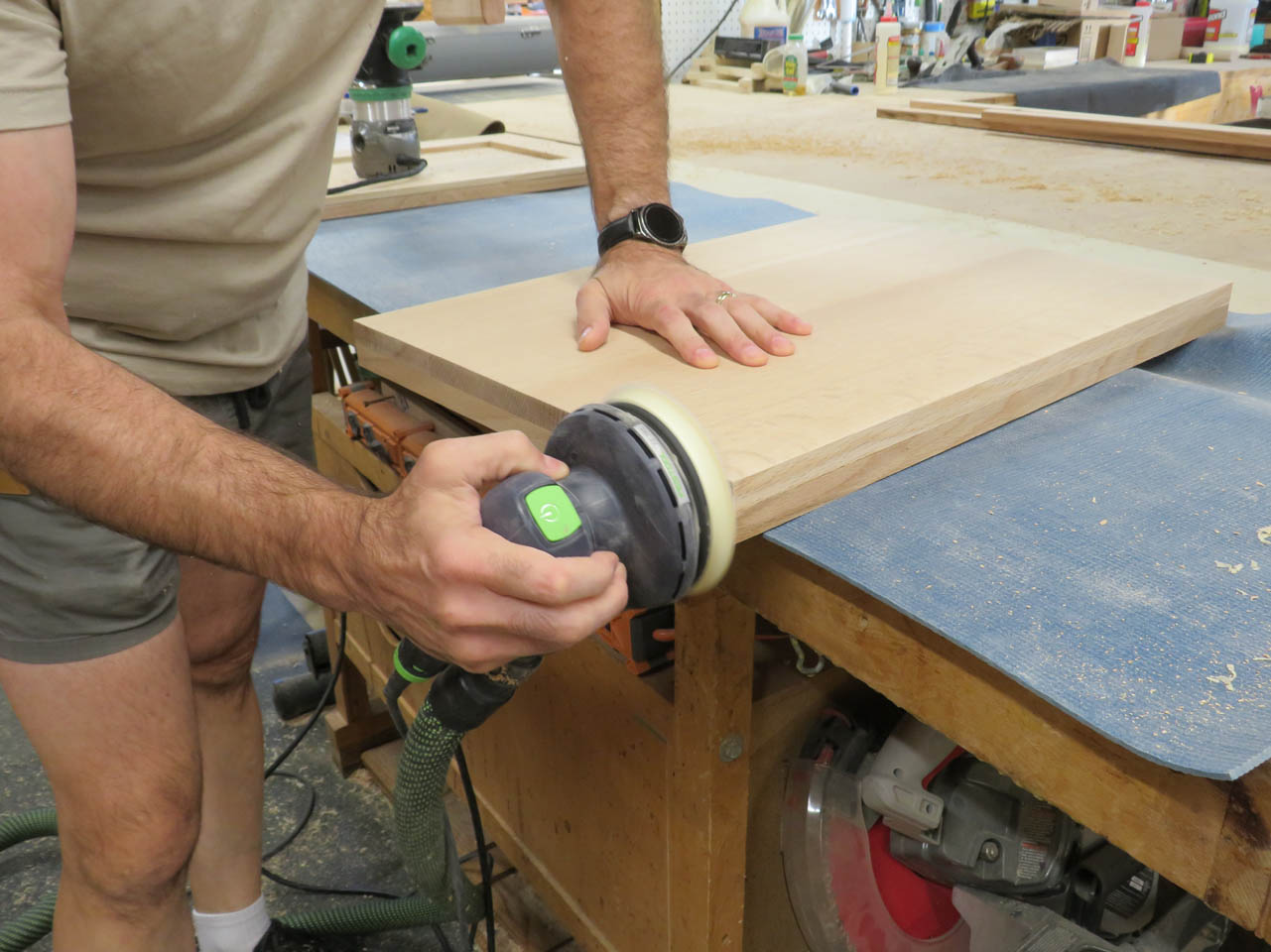 After trimming each of the tops, I sand all of the edges with the orbital sander.