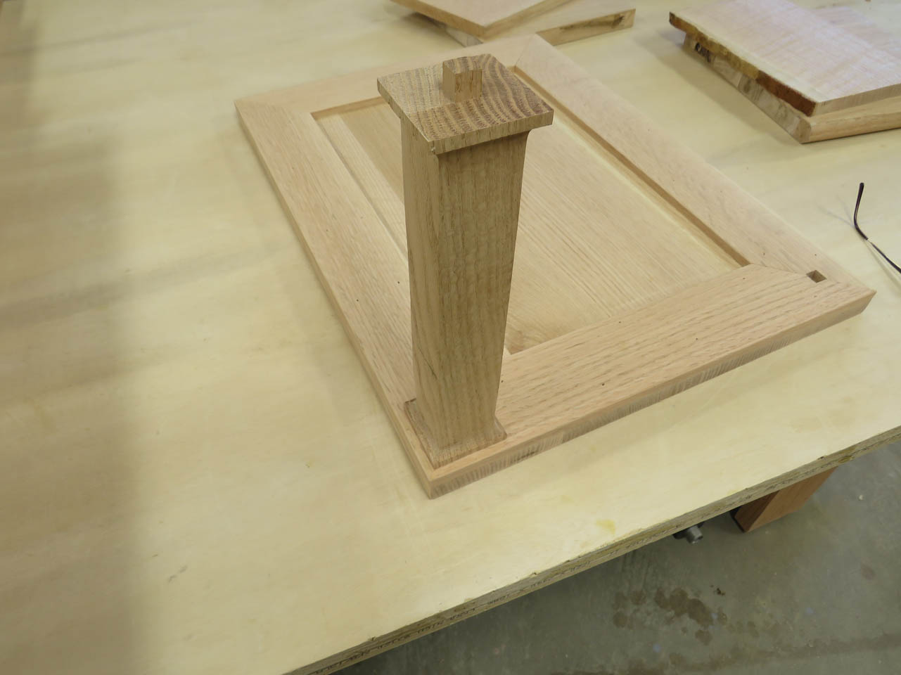 After the first set of top and shelf were mortised, I did a full dry-fit. Looks fantastic.