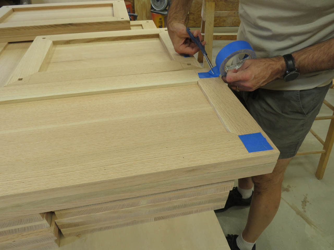 I did this on all of the shelves and table tops so that I could mask the area for pre-finishing.
