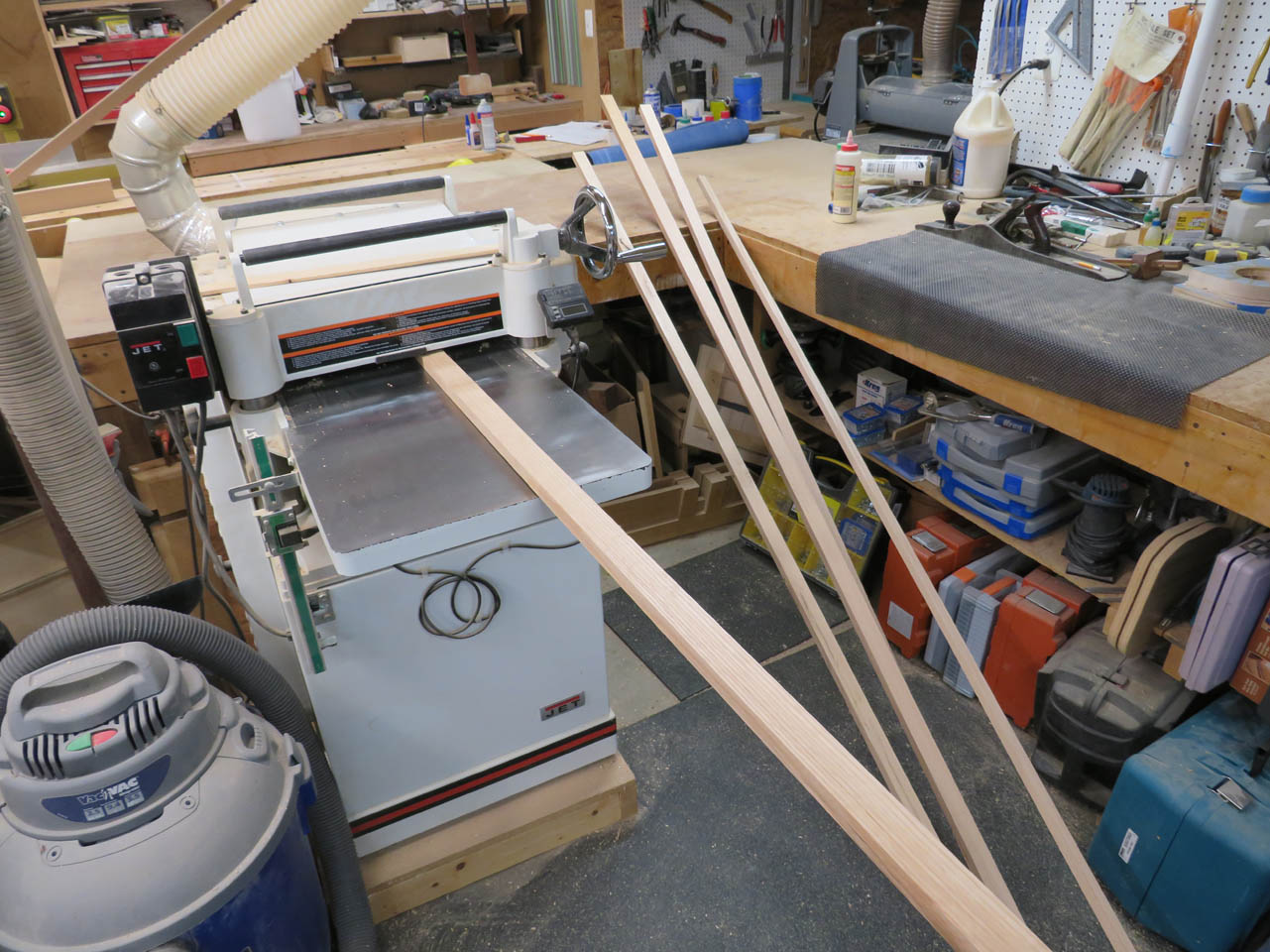 I will start with my off-cuts to create stock for the 5/8″ bullnose. The first step is to plane the stock down to the final 5/8″ thick, then cut it down to the approximate lengths I will need for each side.
