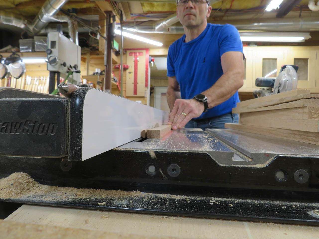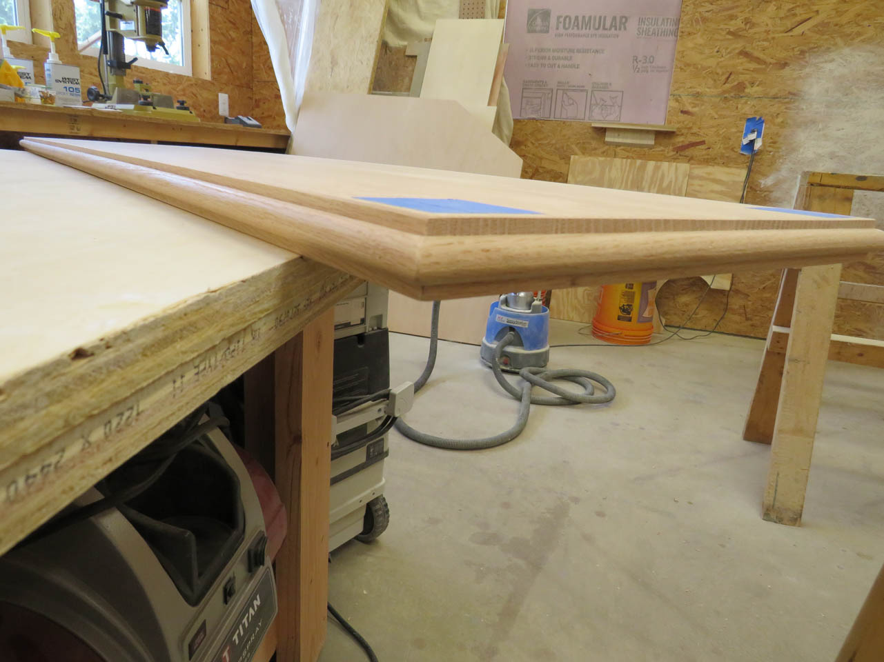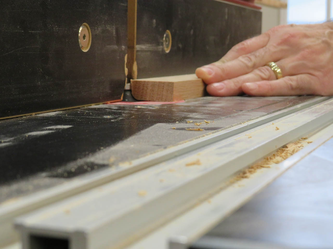 With all of the 5/8″ nosing done, I set up the router table and the table saw to create the 1″ nosing.