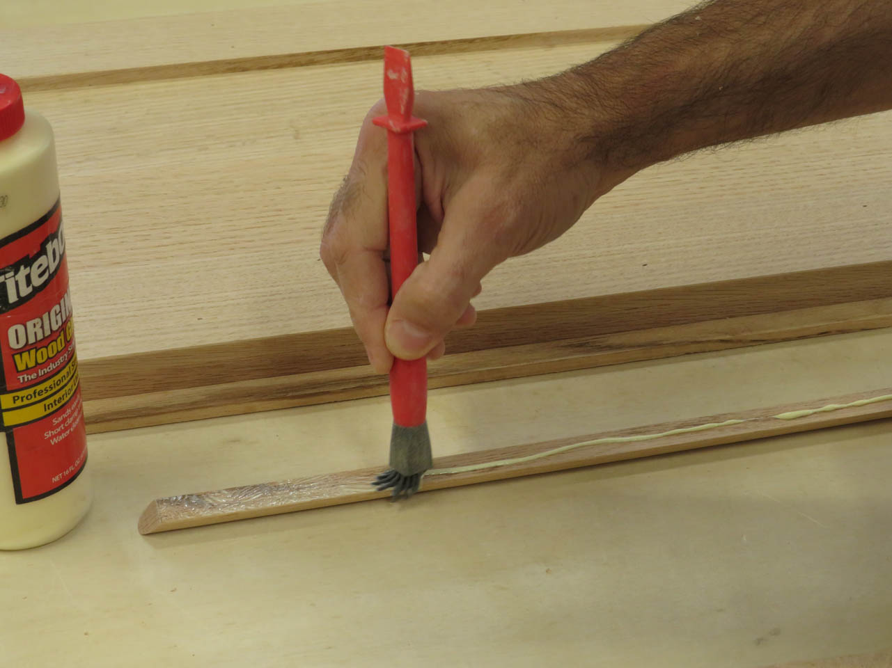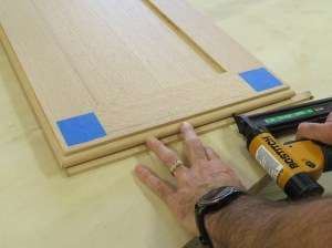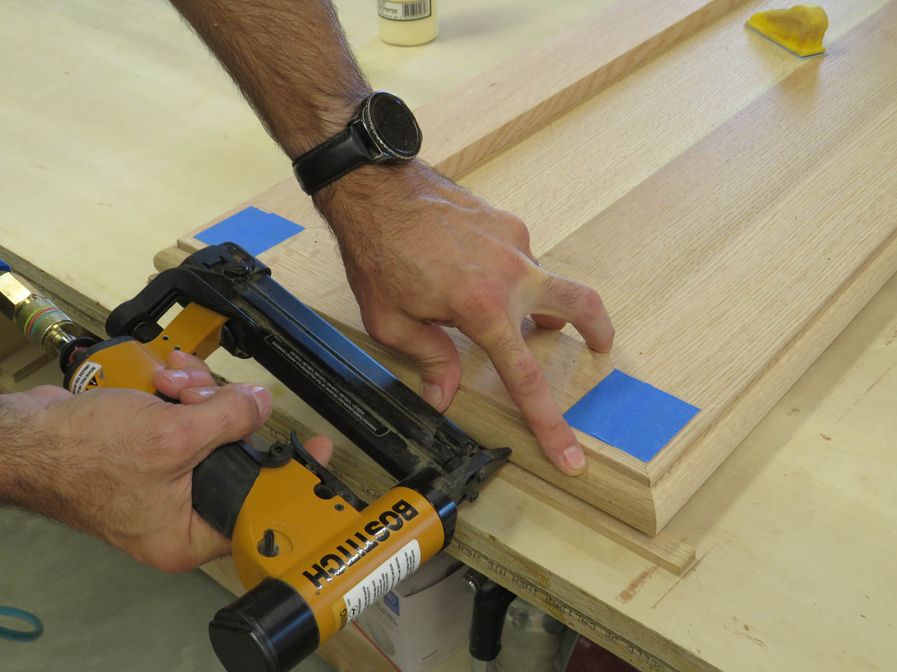 I apply wood glue to the back of each piece of trim before holding it in place with 23 gauge pin nails.