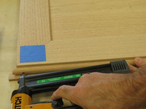 The pin nails are hardly visible but hold well enough to keep the trim in place while the glue dries.