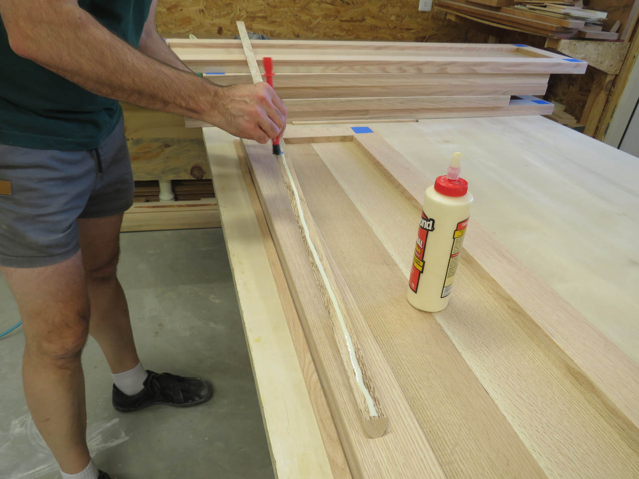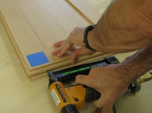 More gluing and nailing each piece… The final piece is always cut a bit long so that I can shave off a little at a time and sneak up on the perfect fit.