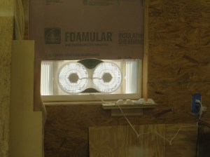 I even bought a new fan to exhaust my overspray outside. Not a prefect setup, but it helps keep all of that overspray from falling back down on the shelves.