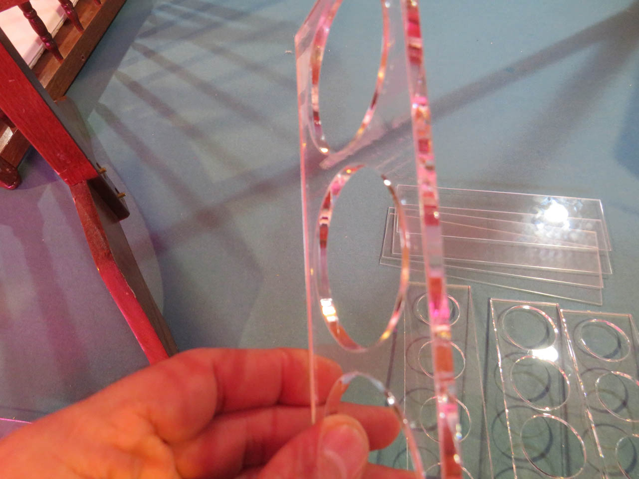 Next, I layered the acrylic pieces together and inserted them into the frames.