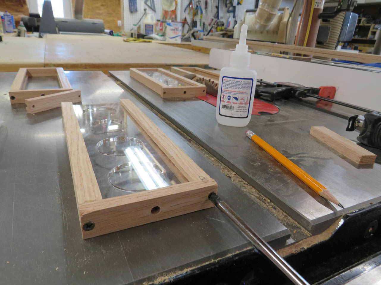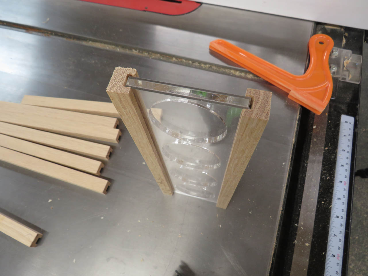 With the acrylic out of the way, I started cutting up the oak for the coin frames.