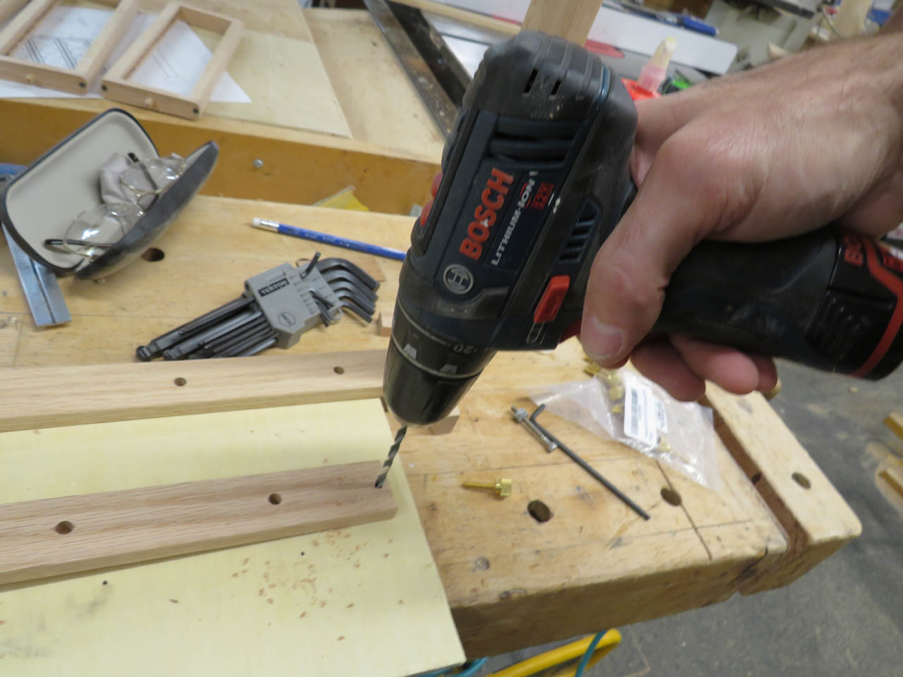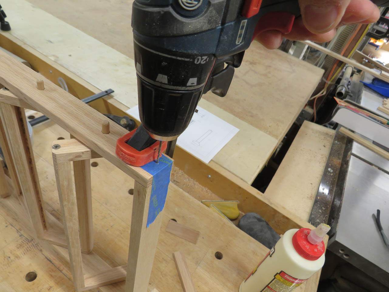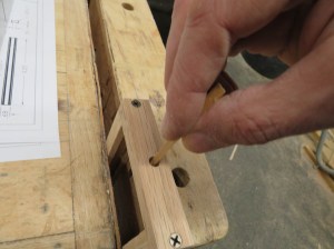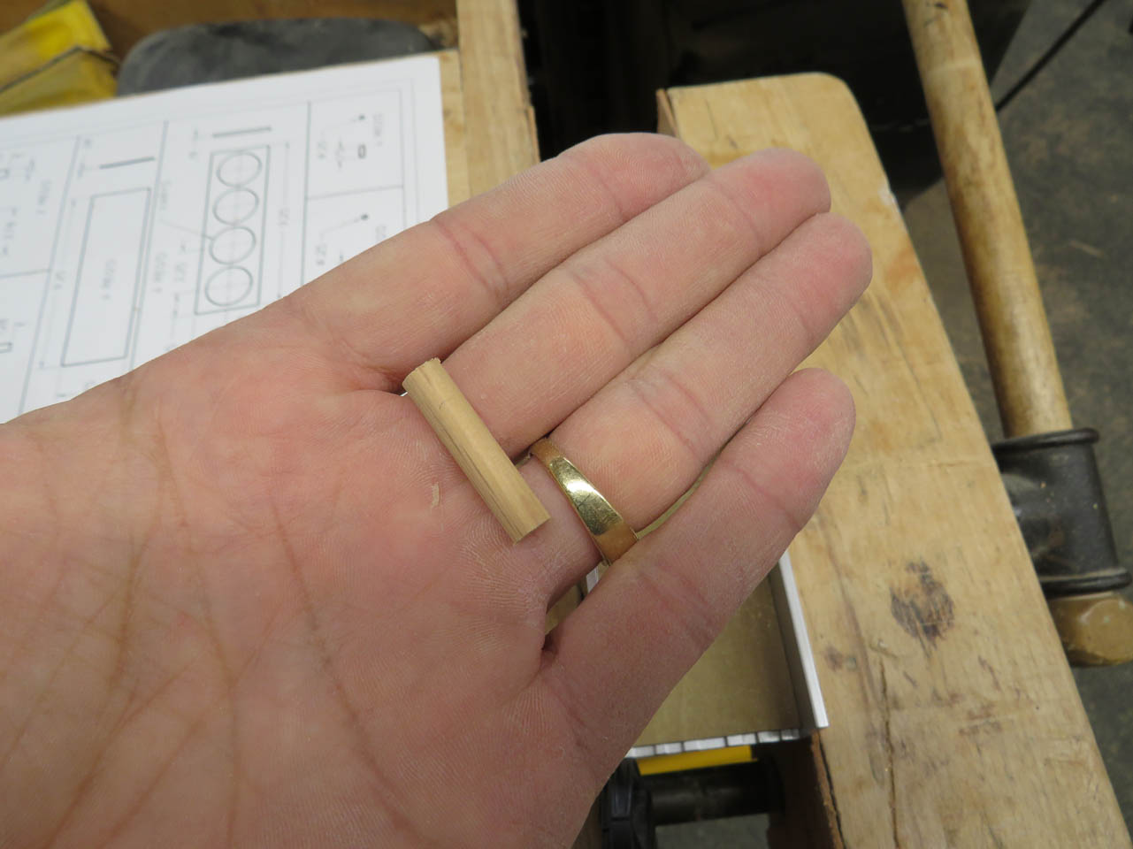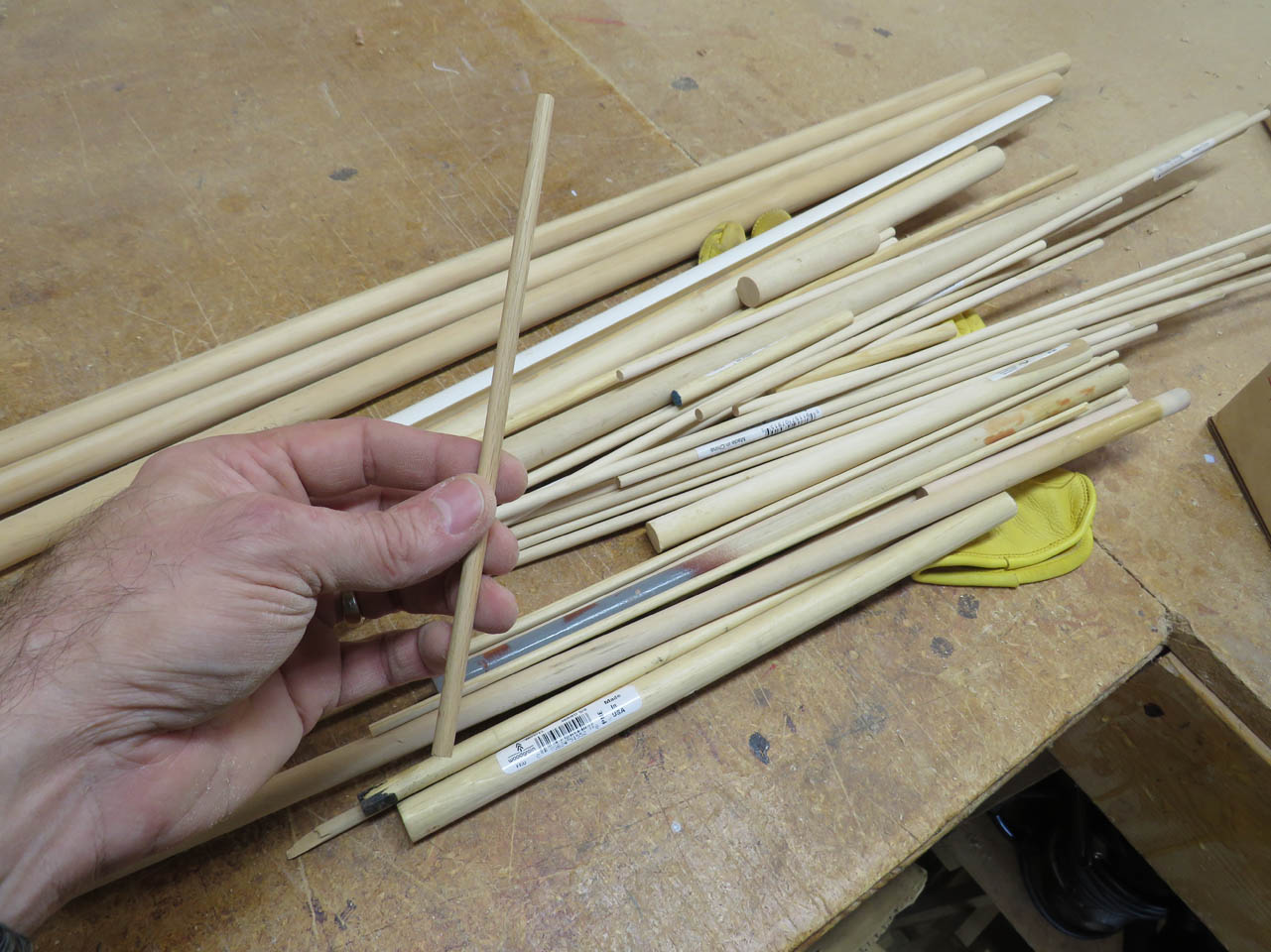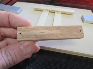 I dumped out my collection of dowels and only found a single piece of 1/4″ oak. Luckily it should be just enough.