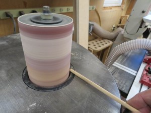 I rounded each end of the dowels before cutting them because they will be too short to hold safely after they are cut.