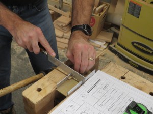 Then I used a tiny miter box and razor saw to cut the dowels to length.