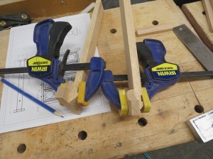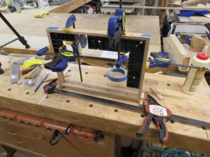 I applied glue in the side dados and clamped the sides to the bottom of the frame.