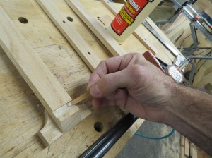 I line the holes with a bit of glue, then insert the dowels.