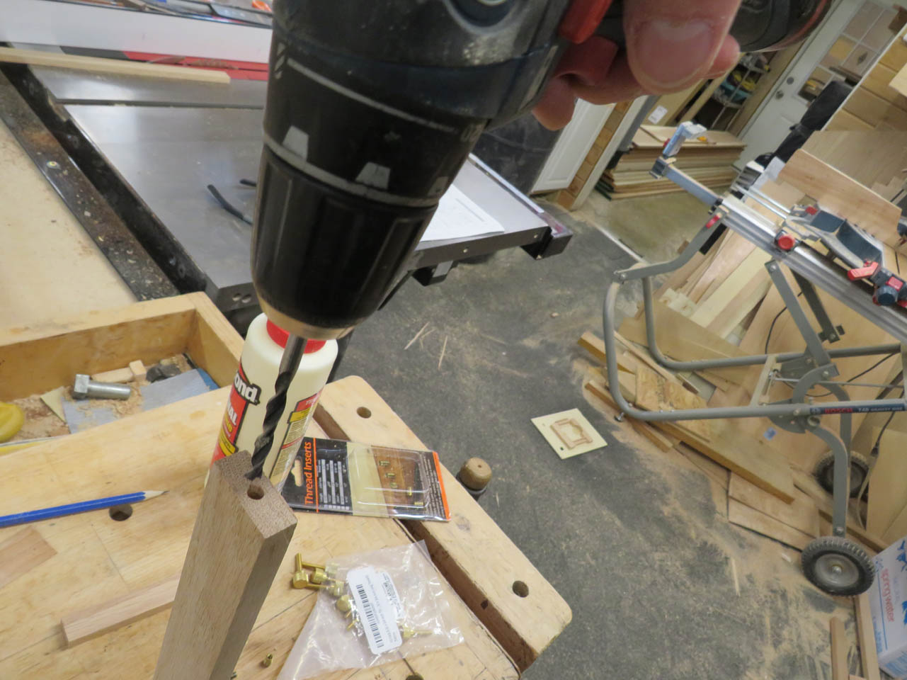 I also installed screws into the threaded inserts to keep the finish from gumming up the threads.