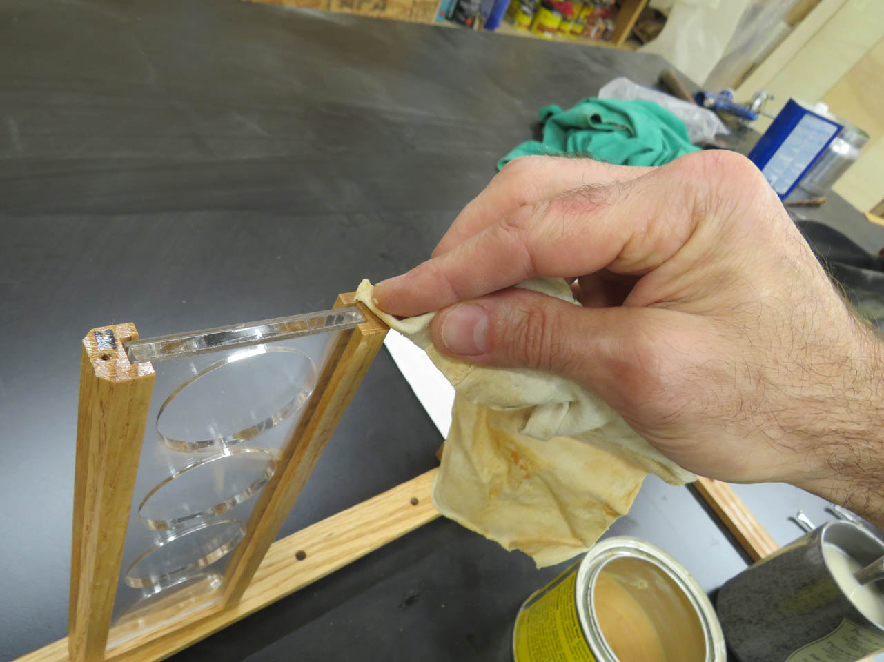 To keep the finish from sticking I applied a tiny bit of past wax to the tops of the frame sides.