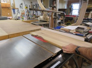 I re-sawed them down to just over 1/8″ thick, keeping track of their order so that I can keep the grain oriented when they are glued back together later.