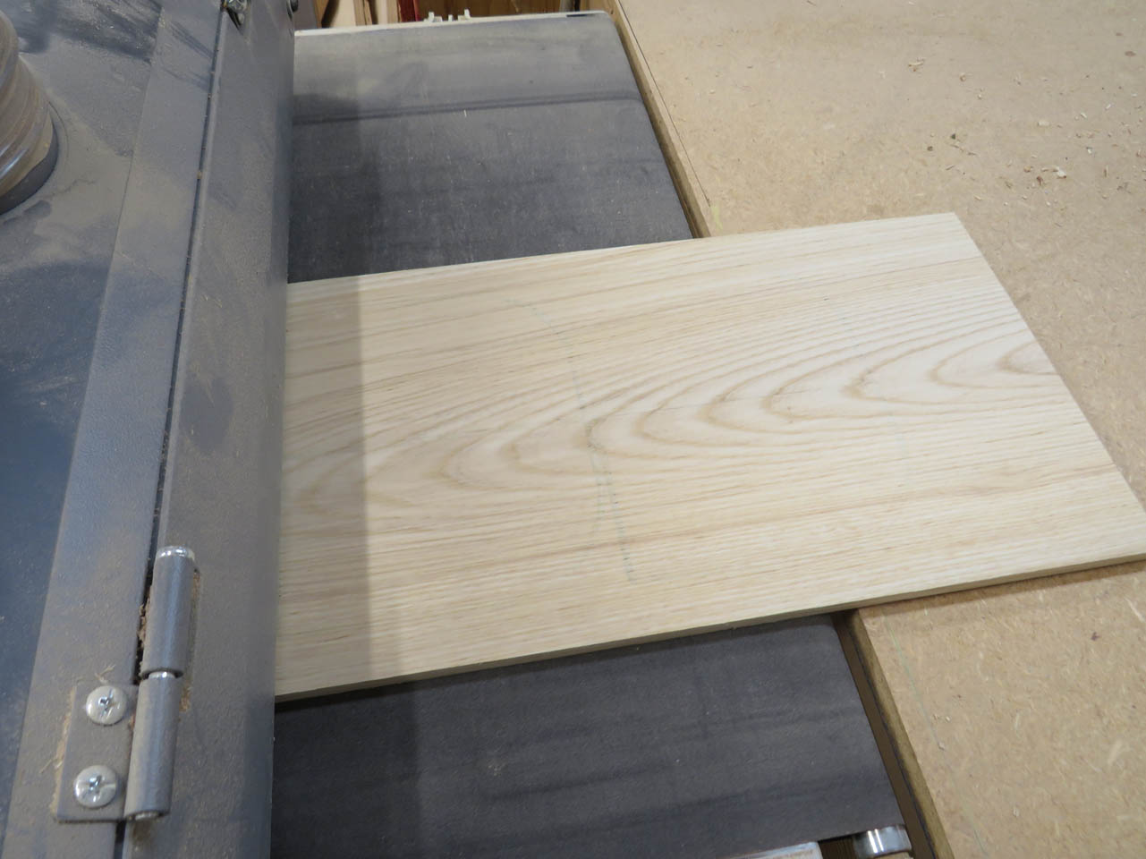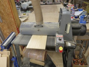 Next I ran each through the drum sander to remove the saw marks and take them down to 1/8″ exactly.