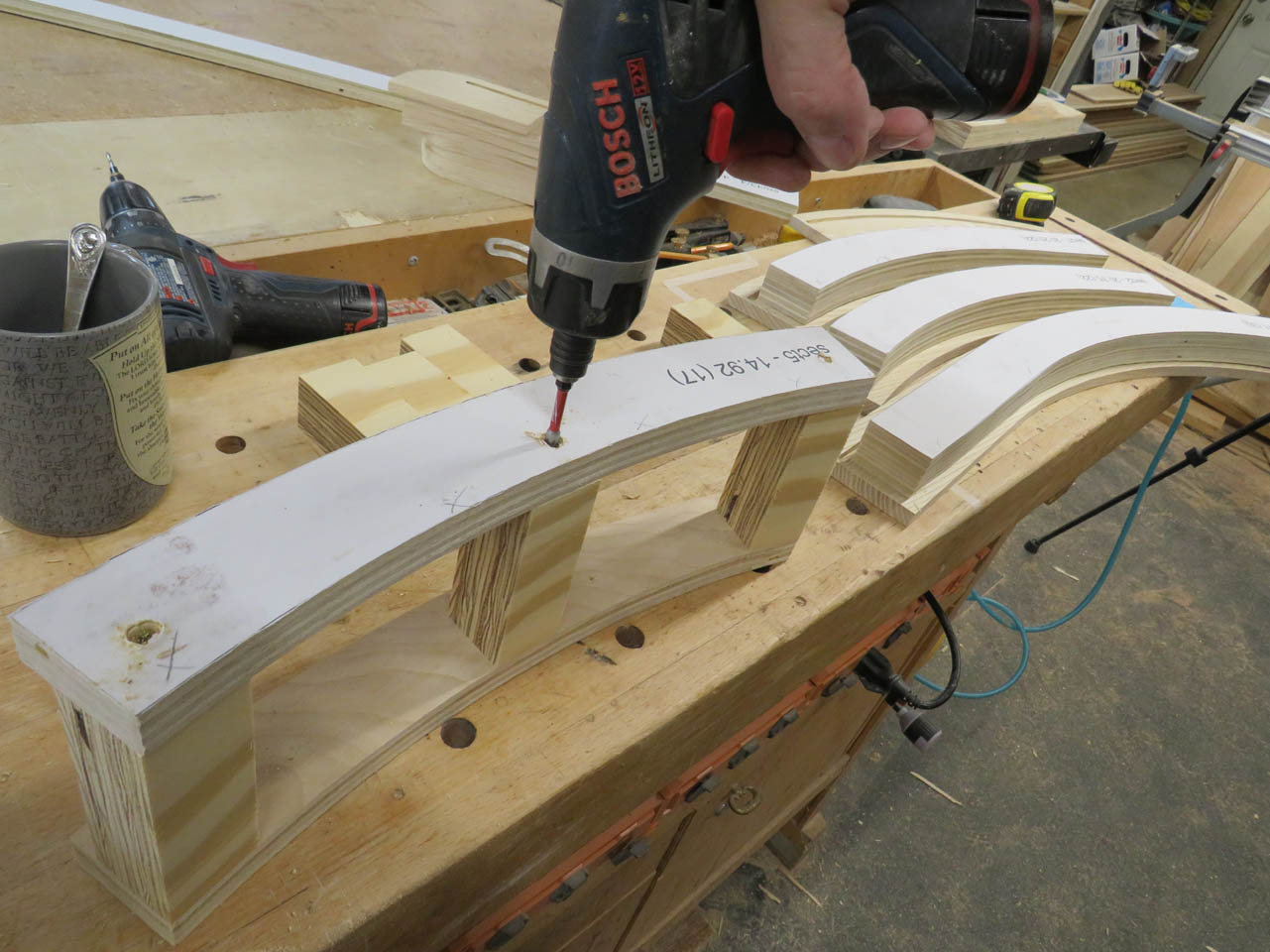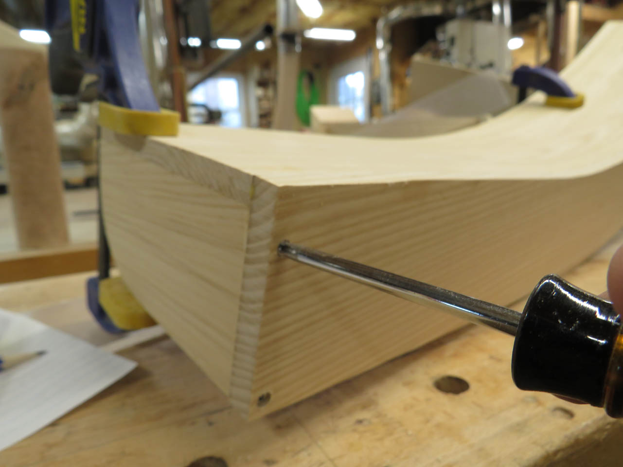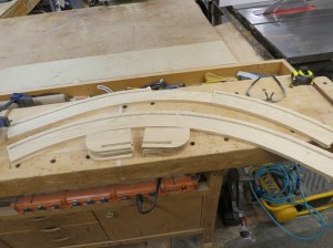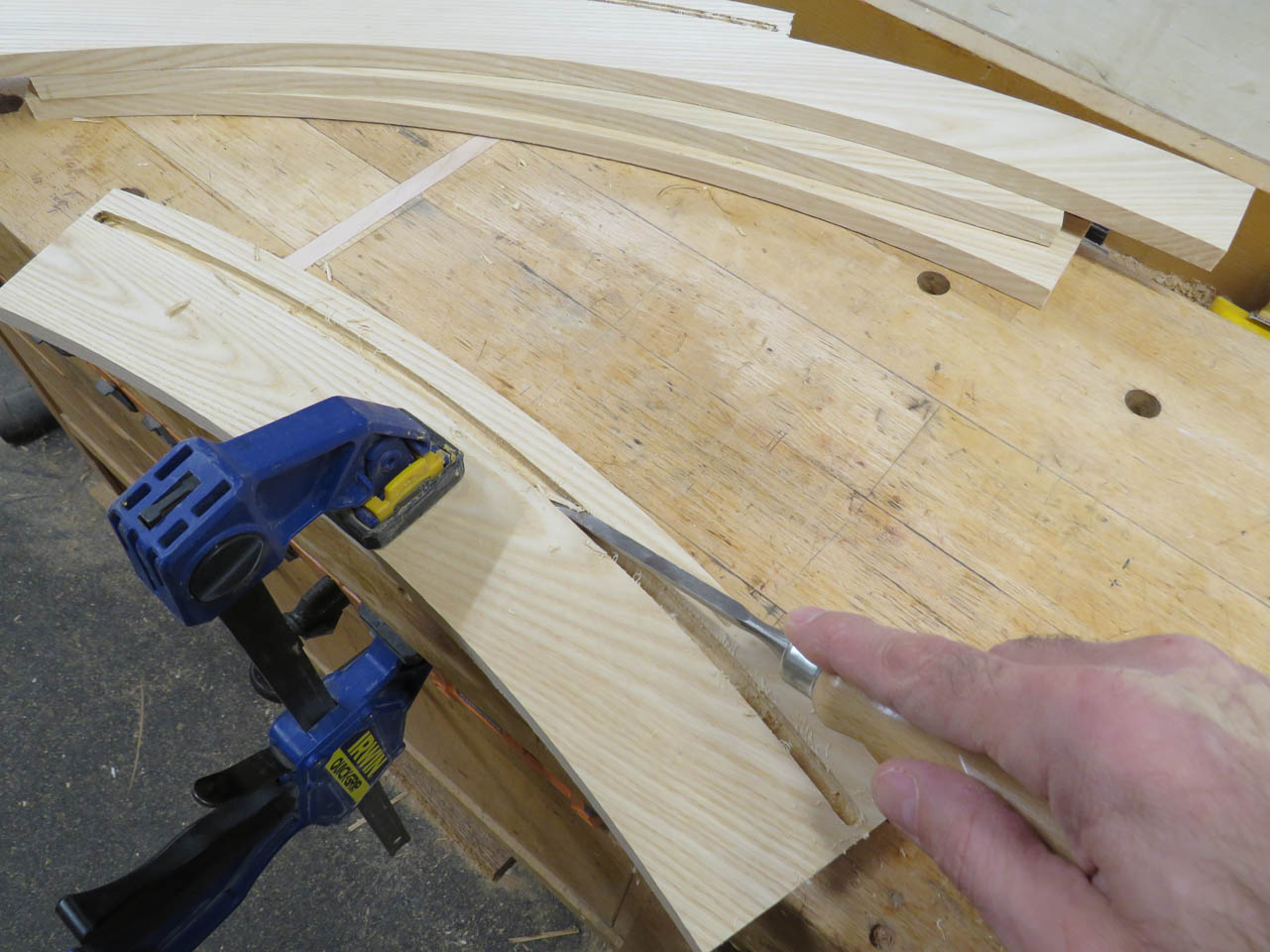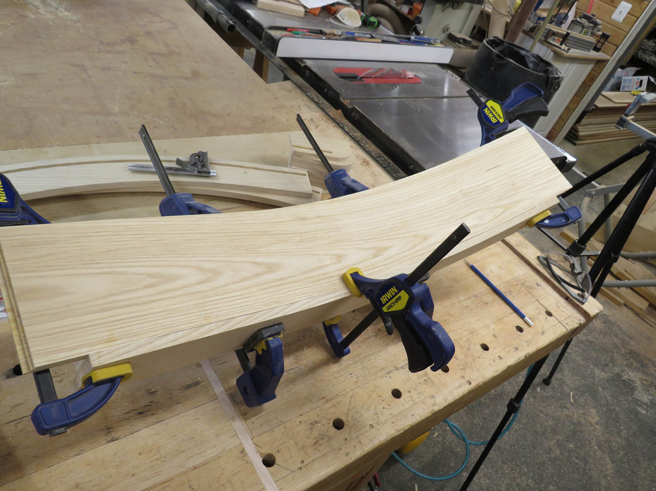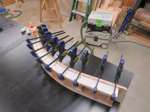 I clamped the laminated stack to the form, using as many clamps as possible to get a smooth curve.