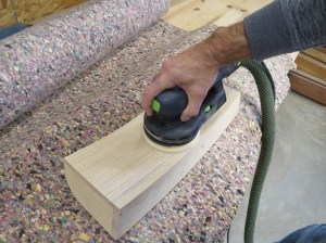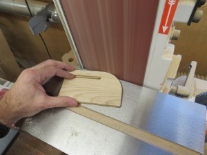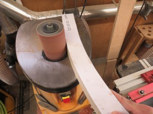 While the two pieces are still attached, I can sand them on the spindle sander making sure they are both identical.