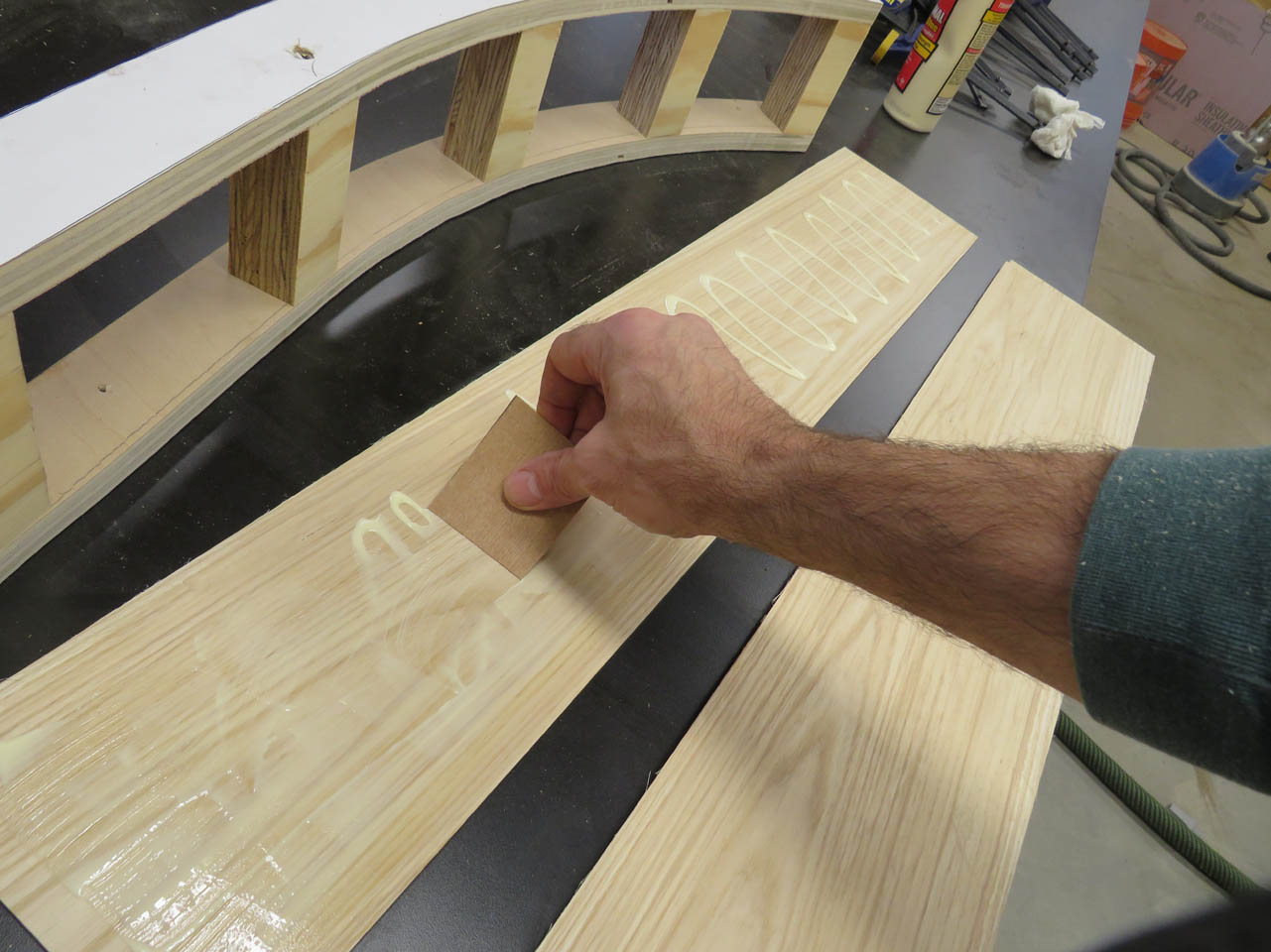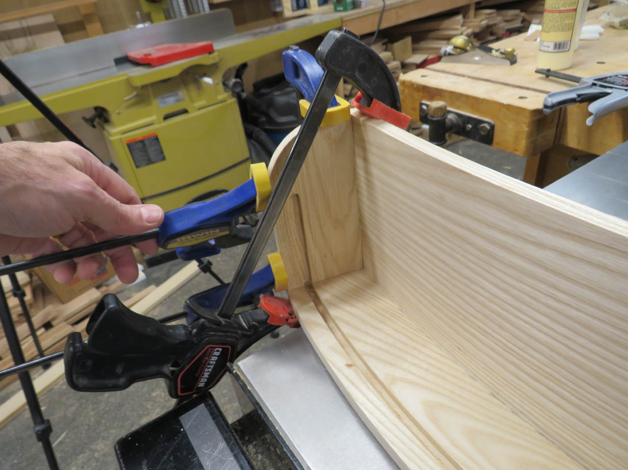 Time to apply glue to the bottom edge and clamp the bent backs into place.