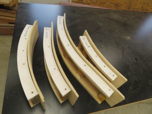Now that my bending forms are complete, I can start cutting down the wood for the curved backs of the racks.