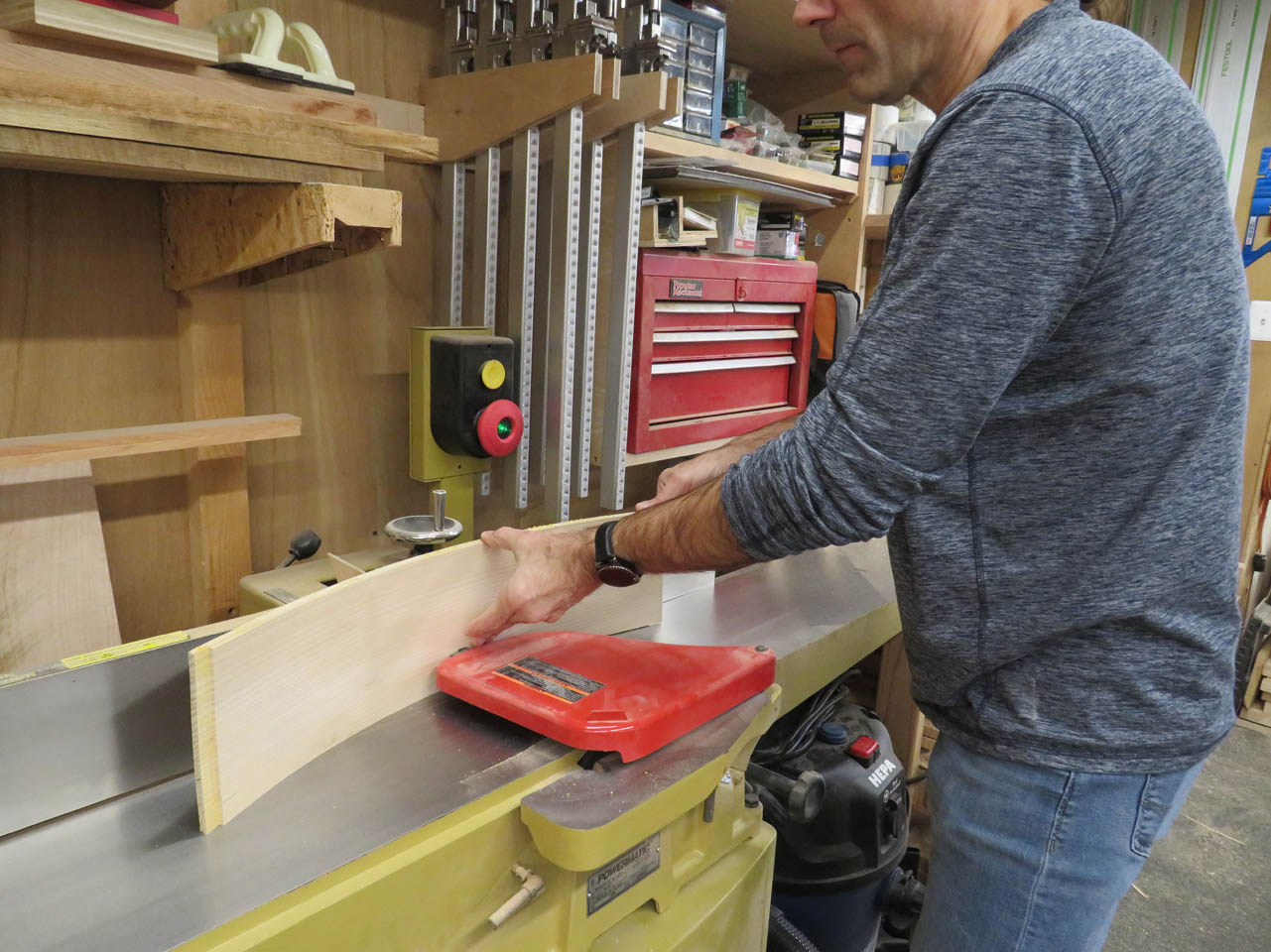 I made these back pieces about 1/4″ oversized so that I could easily clean the edges up. I ran one side along the jointer to get it perfectly flat.