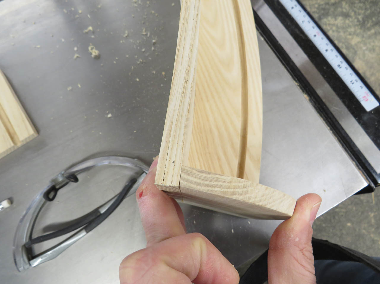 I had a thin sliver left over in the dado that will hold the clear acrylic so I cleaned that up with a chisel then hand-sanded the groove.