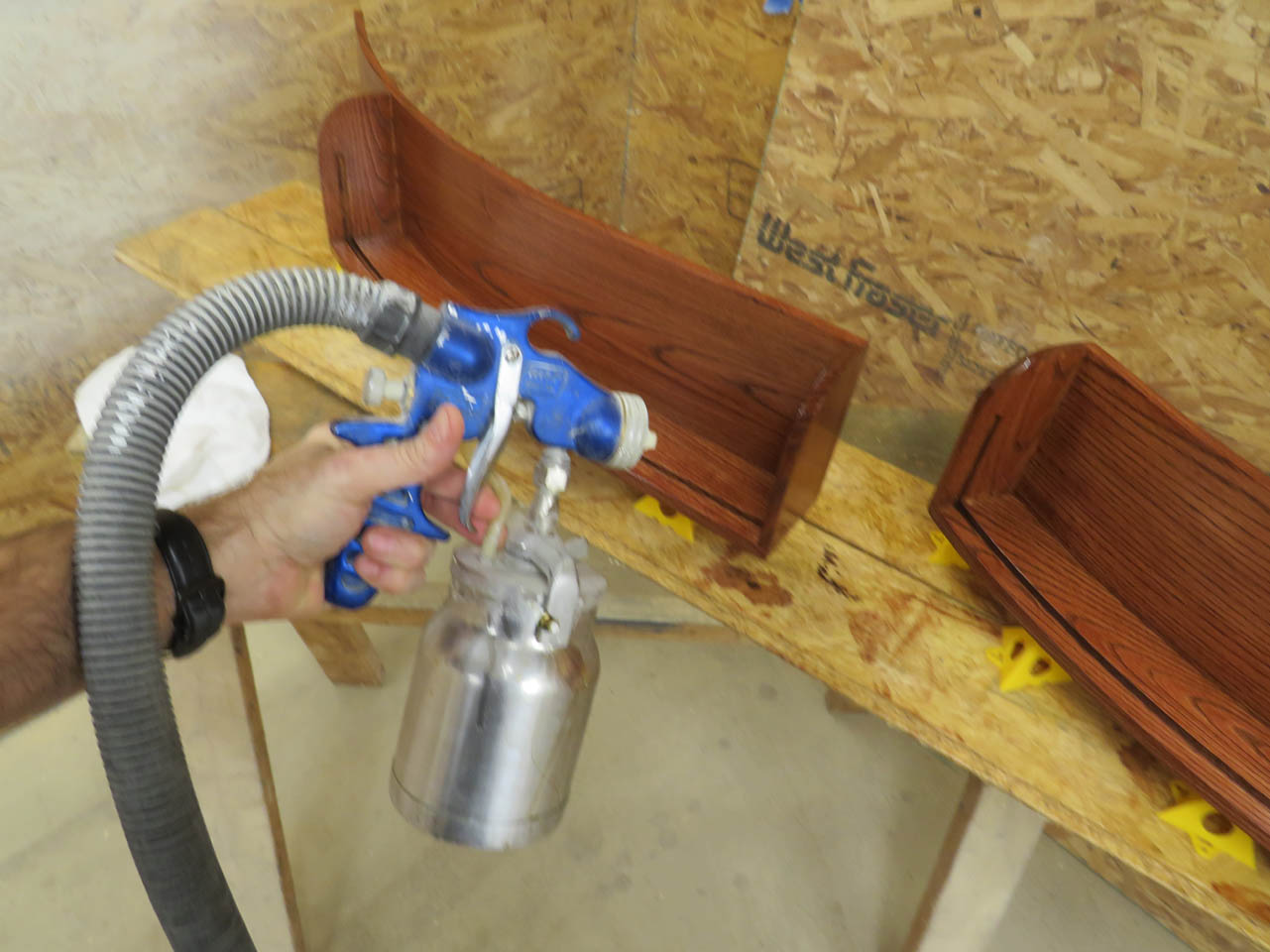 When that was dry, I applied the first spray coat of oil-based polyurethane.
