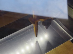 My final piece is 3-3/4″ and the acrylic is cut to 4″ so I set up a straight edge to align each piece to before cutting. Then I let the laser do it’s job.