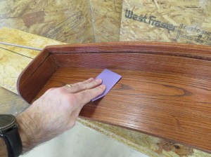 When the first coat was dry, I sanded everything with 400 grit paper and applied the second coat of satin poly. I repeated this again to end up with three coats total.