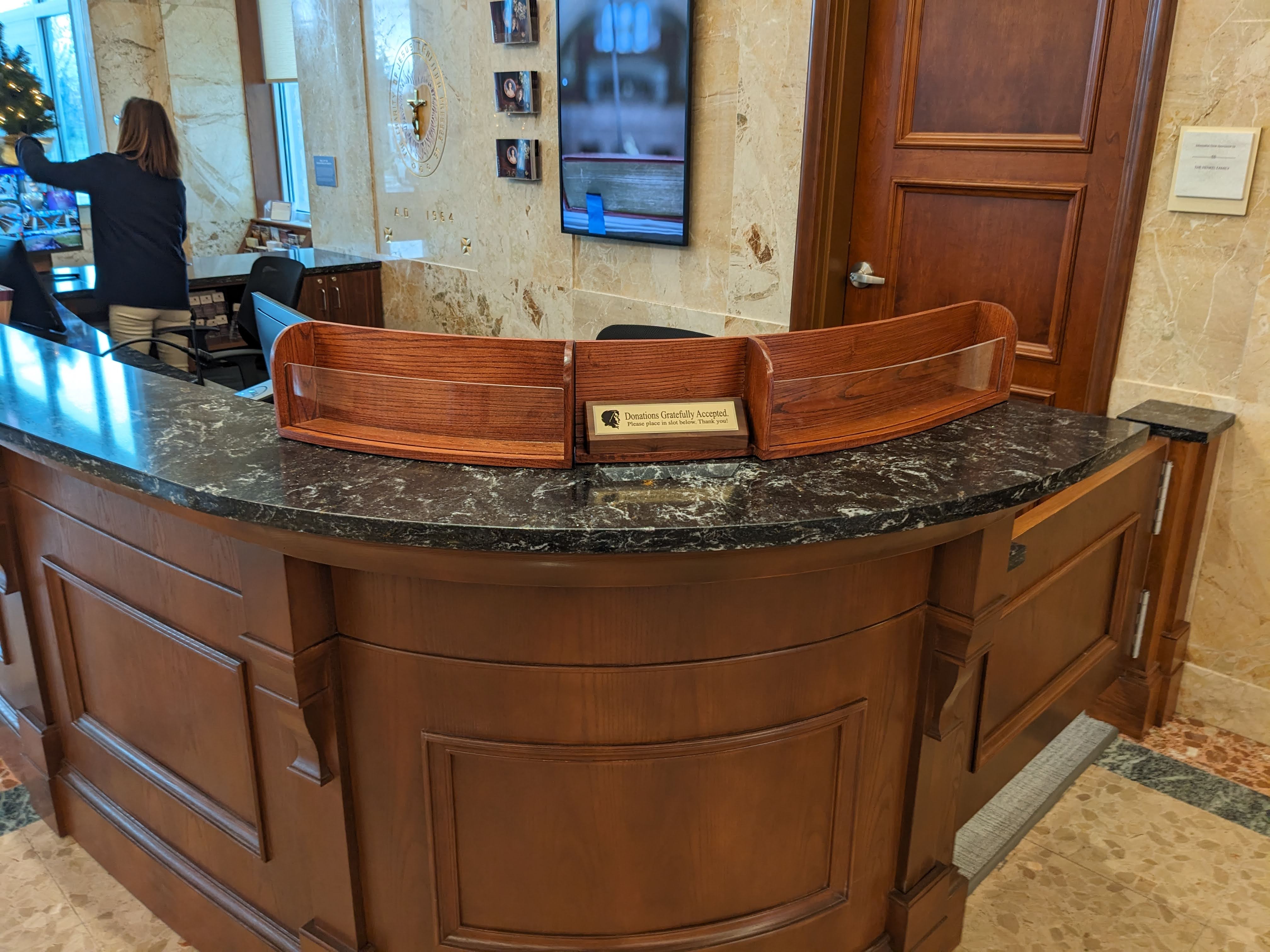 After some discussion, they opted not to have the two straight sections made right now, but the four curvy sections still need to be built. The reception desk is stained ash wood. I will be bending the ash so it will have to be air-dried wood. The kiln drying process hardens the wood and makes it more difficult to bend without breaking. I was able to get some air-dried ash from a woodworker that has a sawmill and had a little bit left.