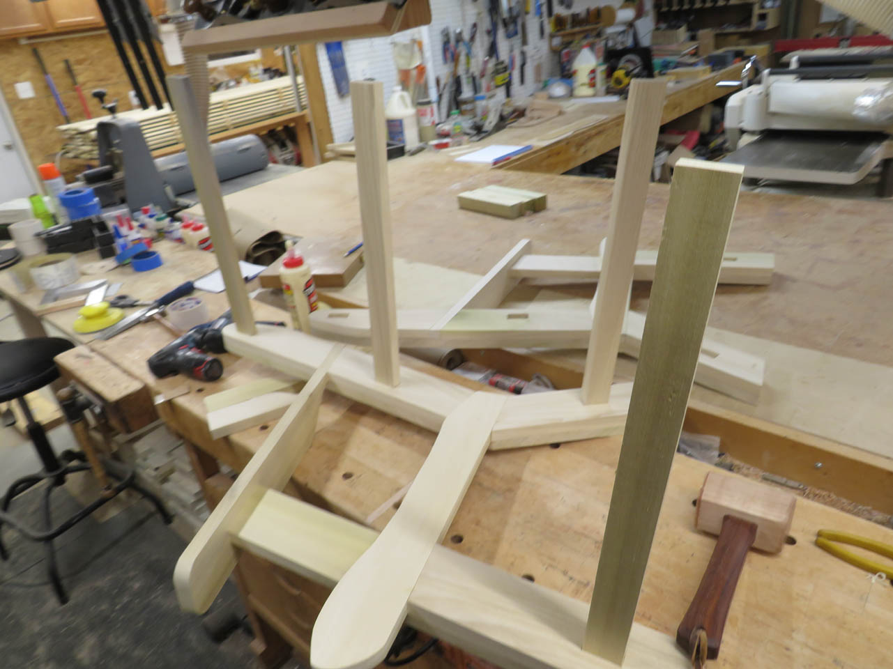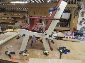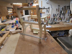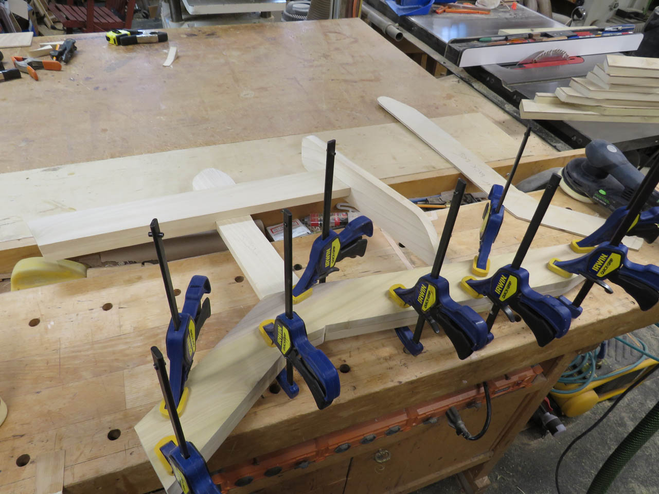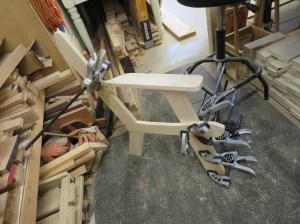 Once both sides are glued, the entire structure can be clamped together, making sure all the legs are sitting flat on the bench so there is no twist.