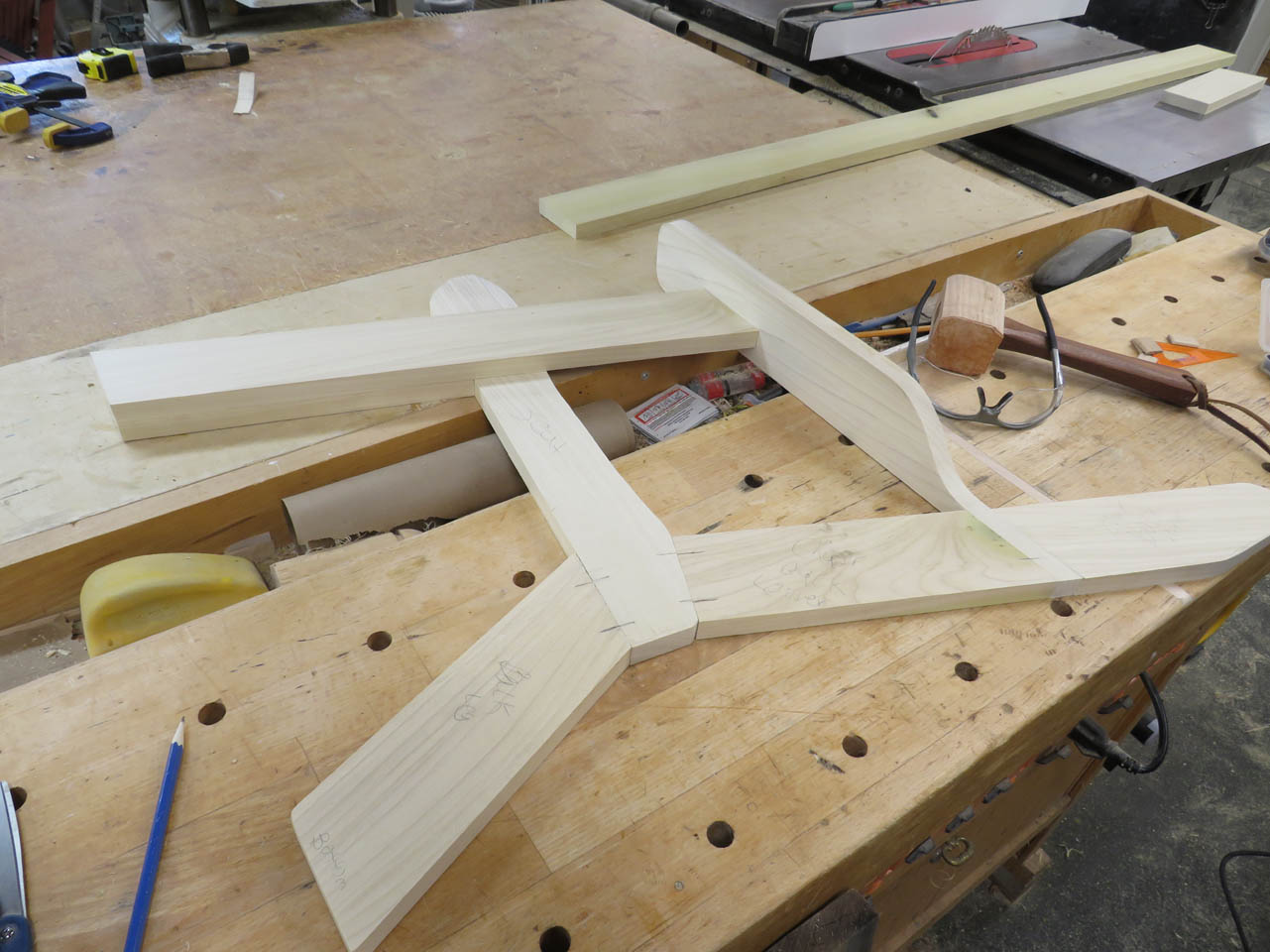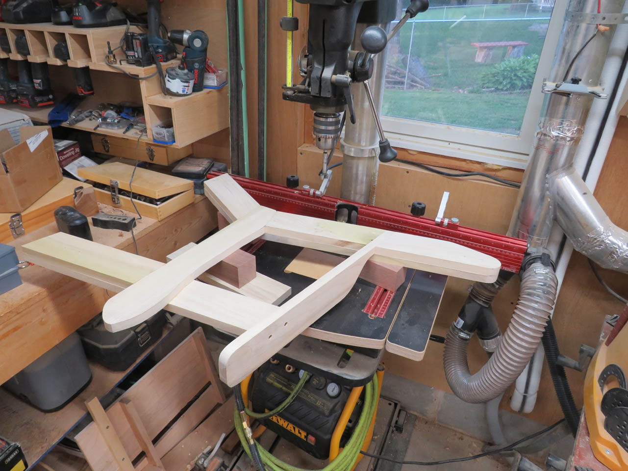 This version was made from scrap poplar and would probably survive outdoors for a while with a good coat of paint, but for prototyping, poplar is perfect because it is softer and easy to work. It was an interesting experiment and it gave me an idea how long the next version will take to make. I now have templates so I can reproduce it accurately if needed.