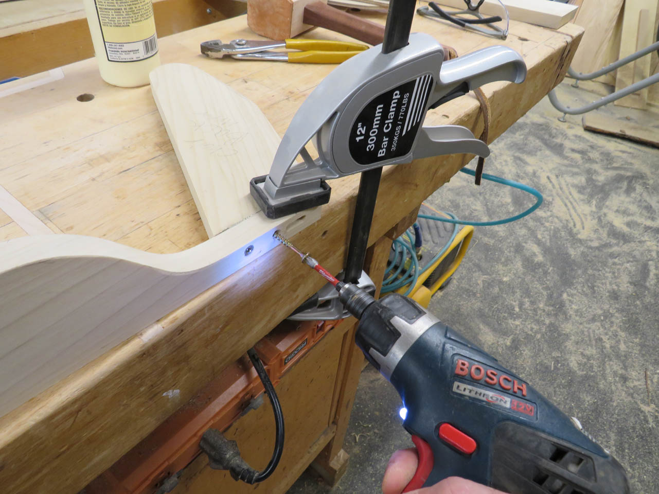 Once trimmed, it also gets clamped into place and the rear leg is created in the same fashion.