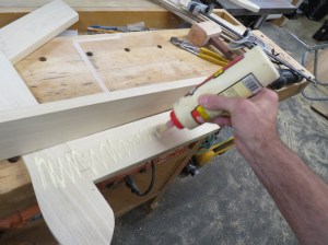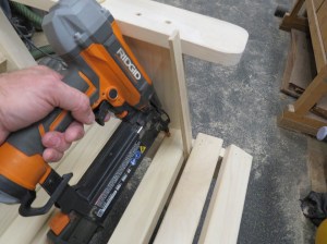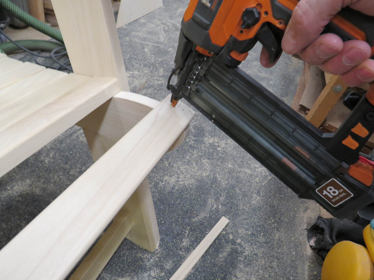 For the prototype, I am installing the seat slats with glue and a brad nailer.