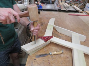 Then I chopped out the mortises by hand with a chisel, squaring up each pocket.