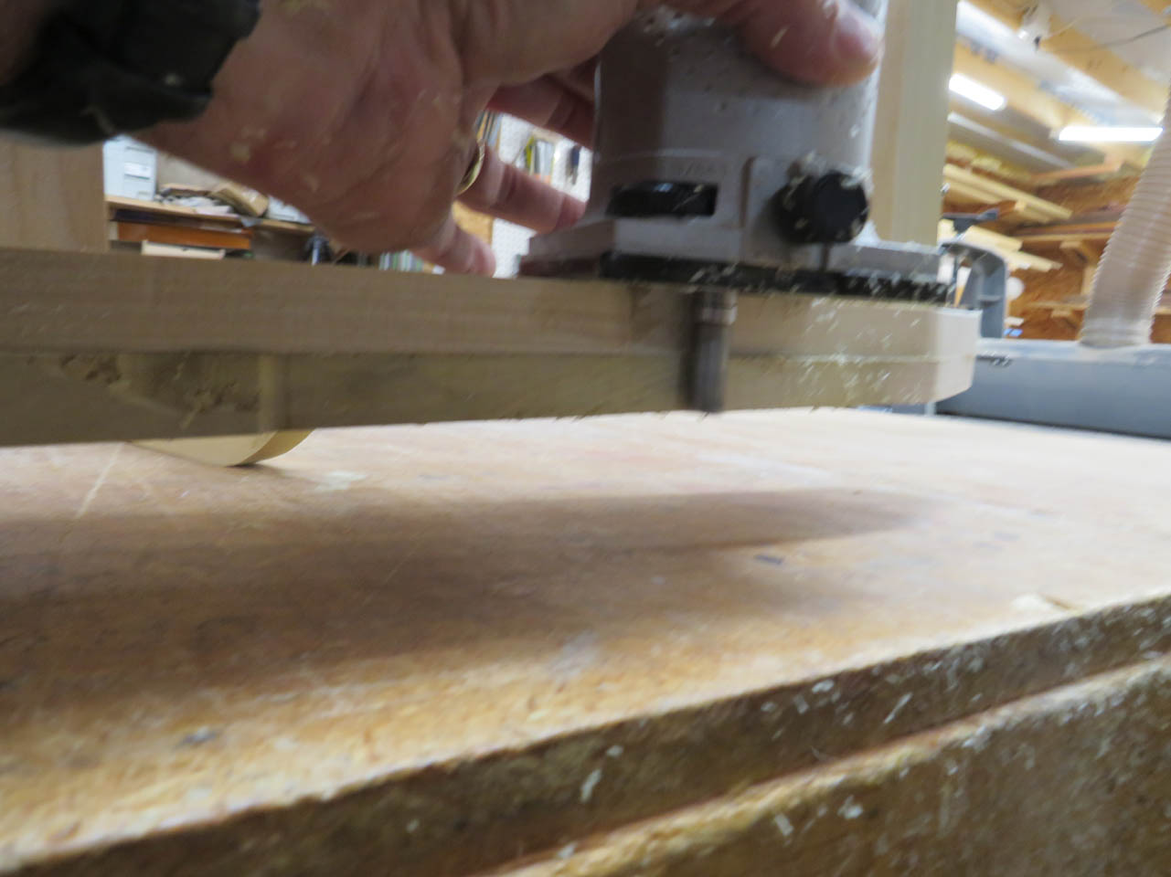 I noticed a couple of locations where my boards slipped when gluing up so I set up a flush-trim bit in my trim router.