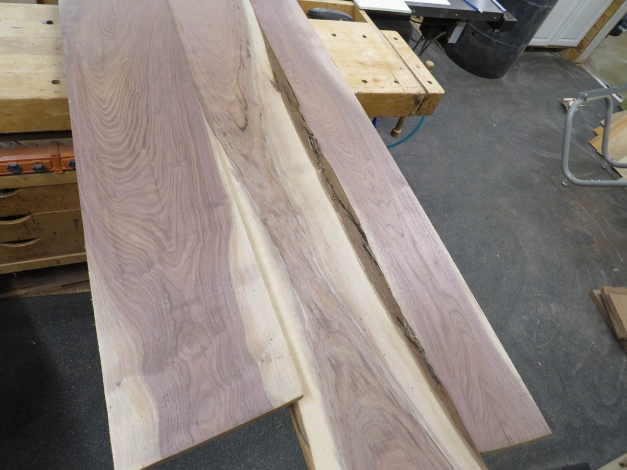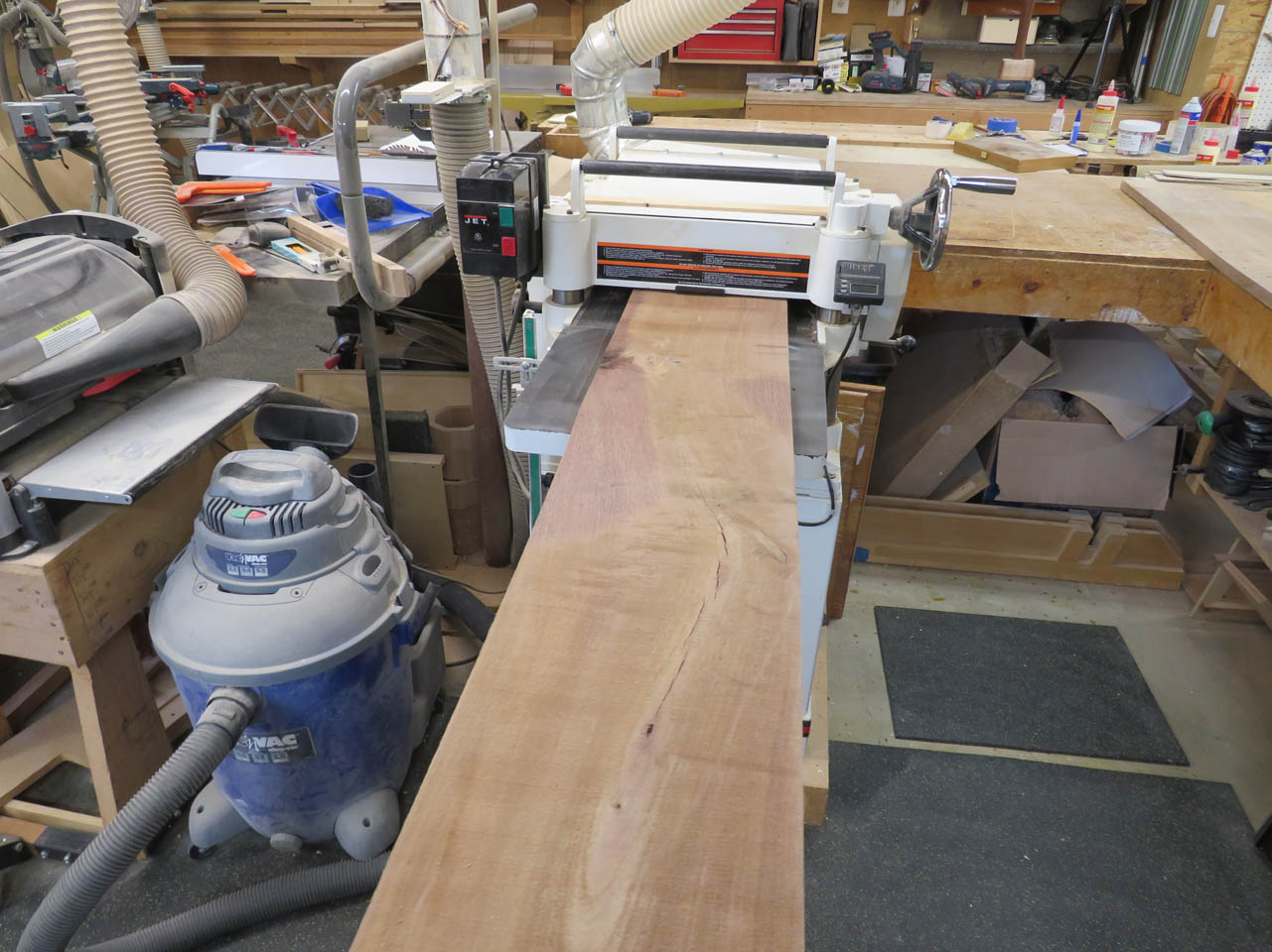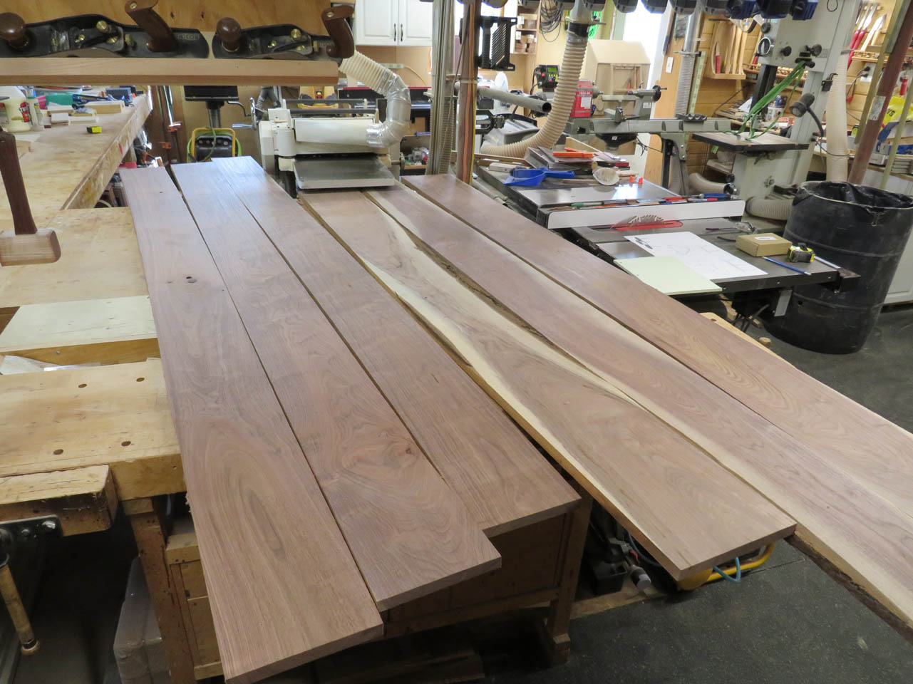 I started by planing the walnut boards that I had in my shop.