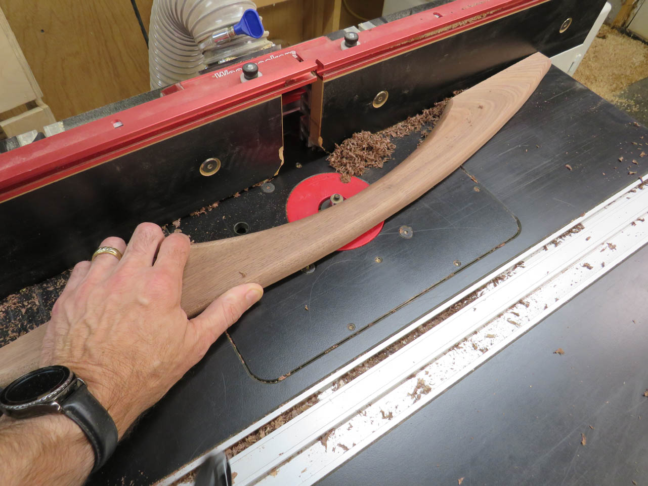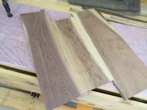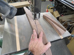 I just traced them with a magic marked onto some more 7/8″ walnut and cut them out on the bandsaw as well.