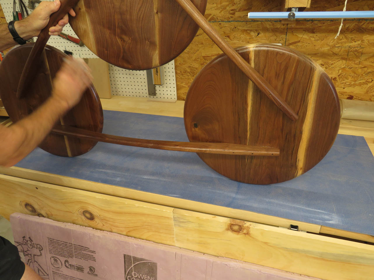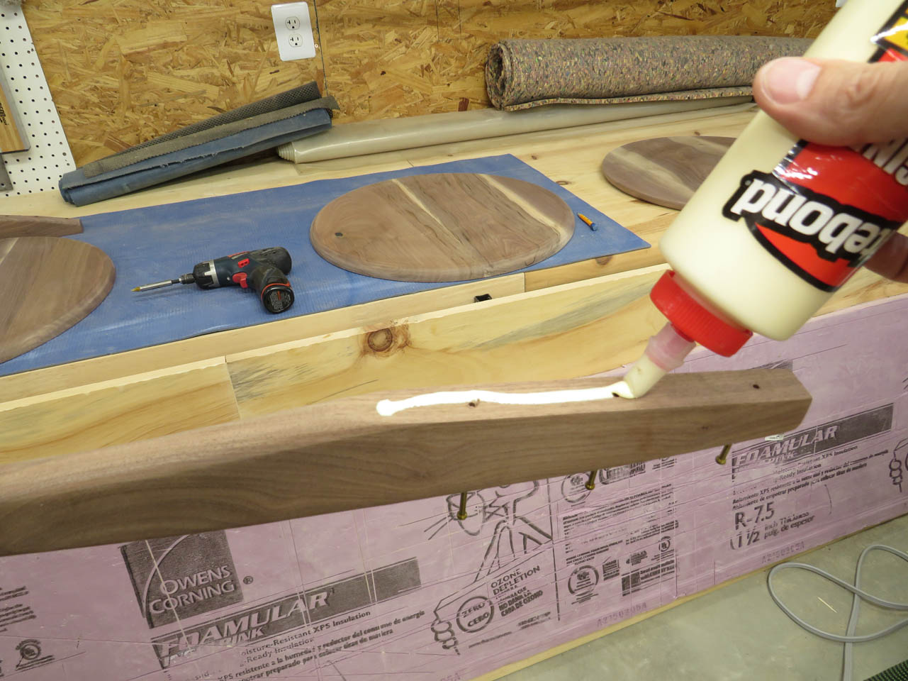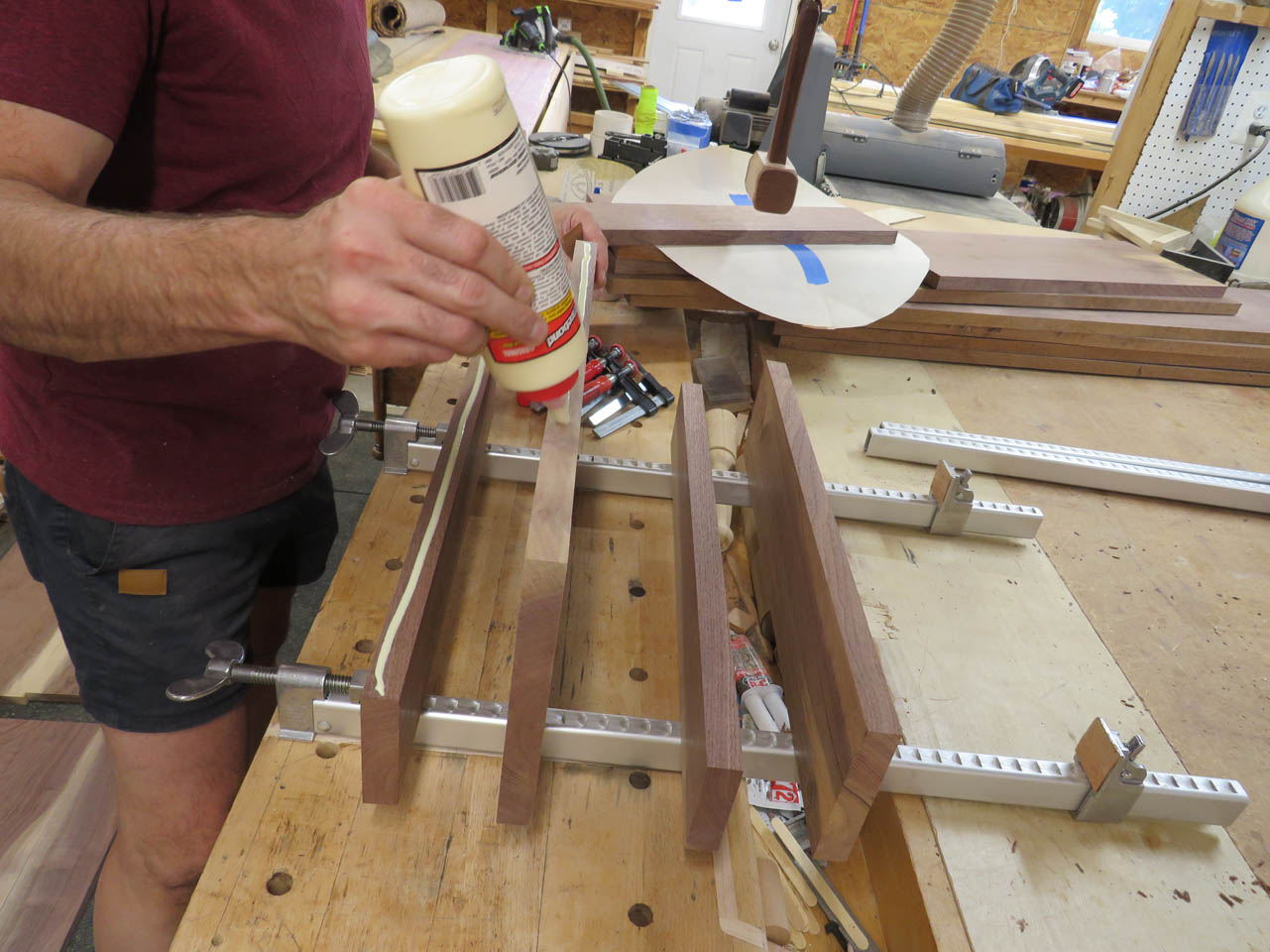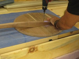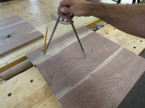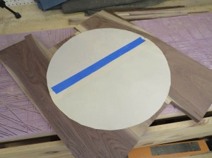 After the glue dried, I pulled the clamps and laid out the 20″ diameter circle with a large compass.
