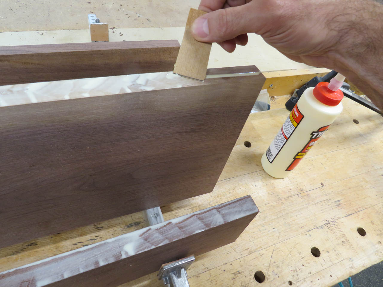 Then I applied wood glue to each adjoining edge and clamped them together.