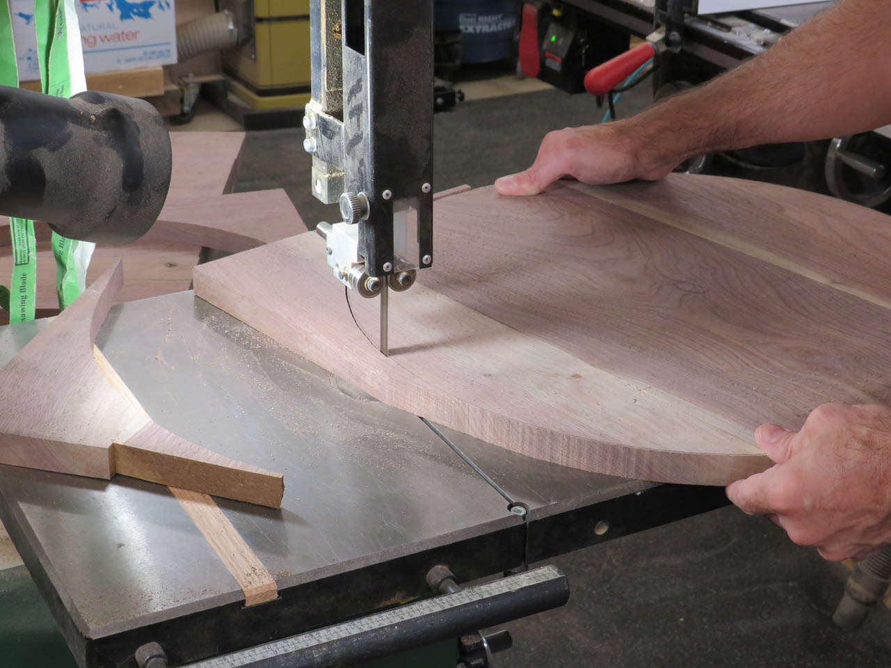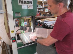 Then I cut out the circle on my bandsaw. Carefully staying just outside the line.