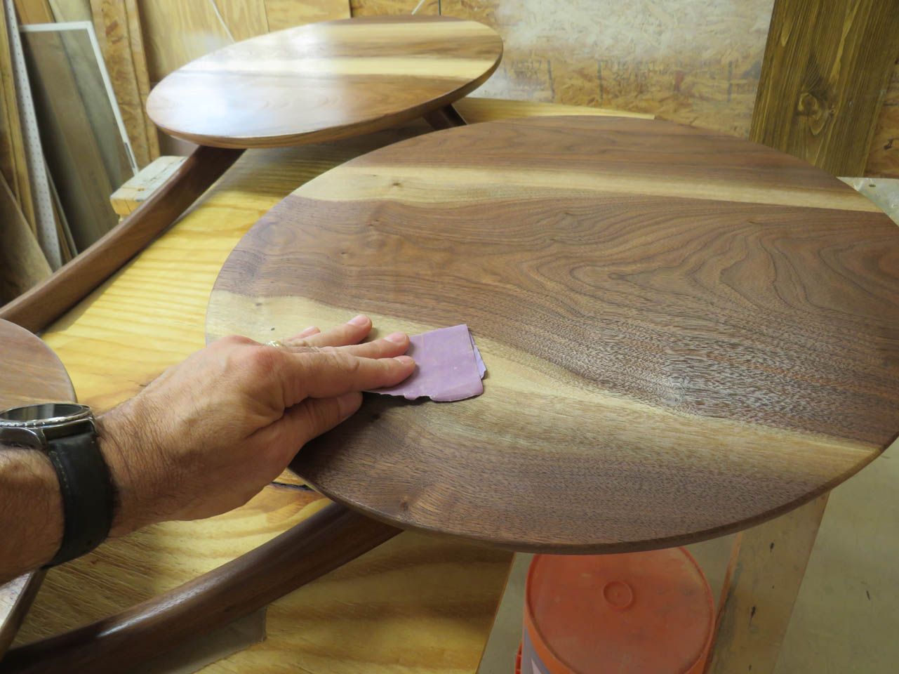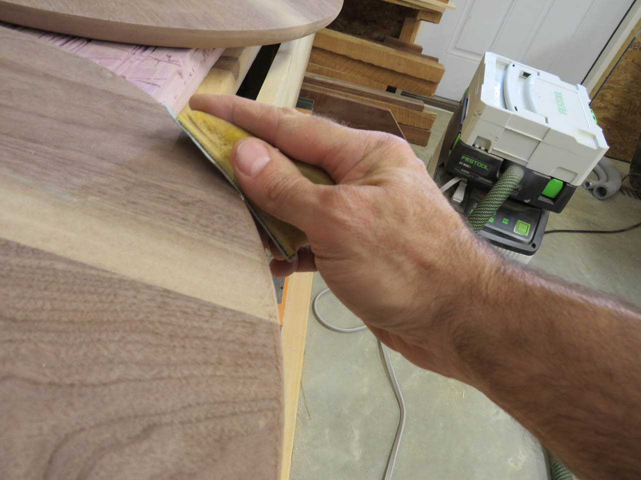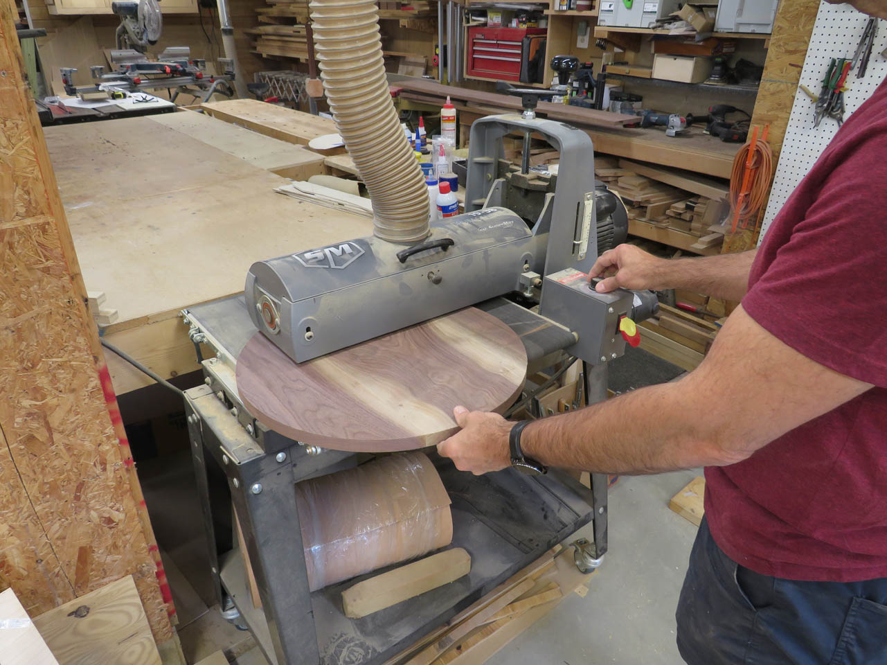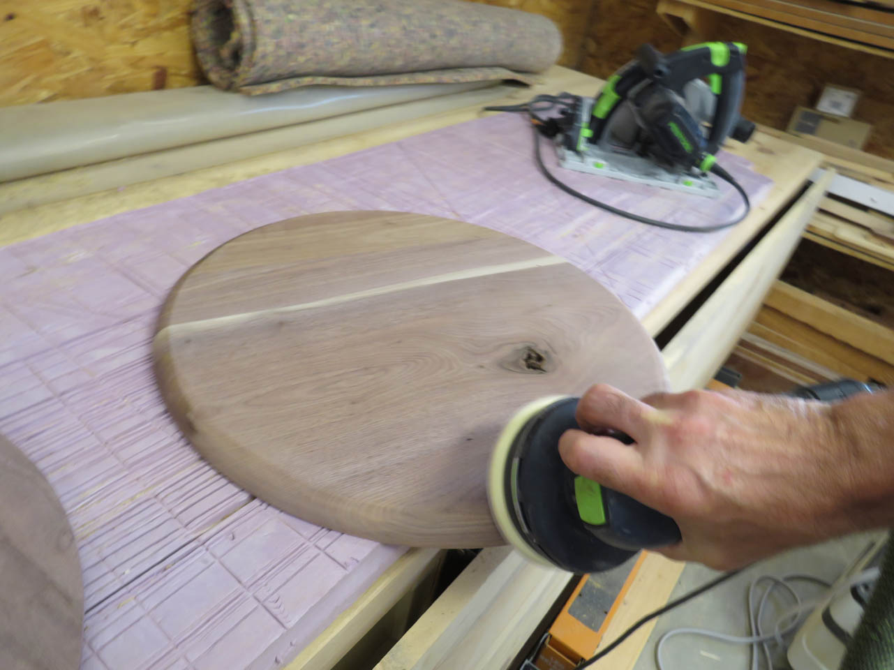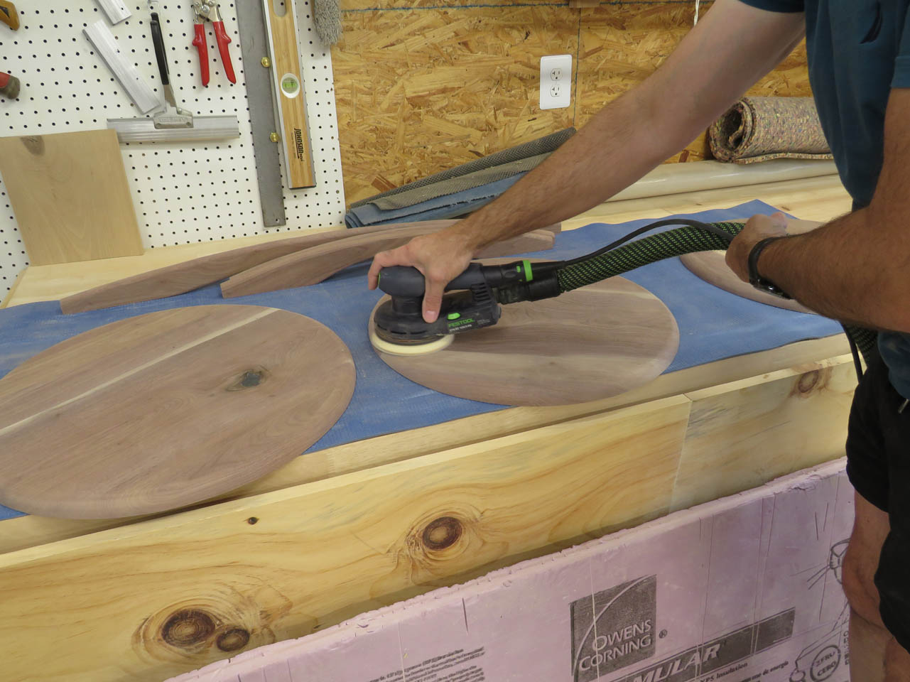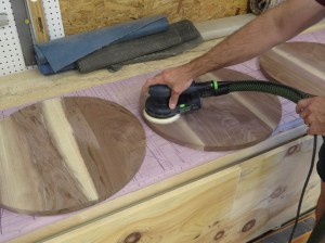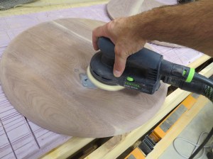To smooth out the joints, I first sent the discs through my drum sander, then finish sanded the faces by hand with the random orbital sander.