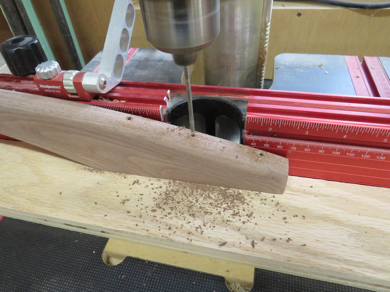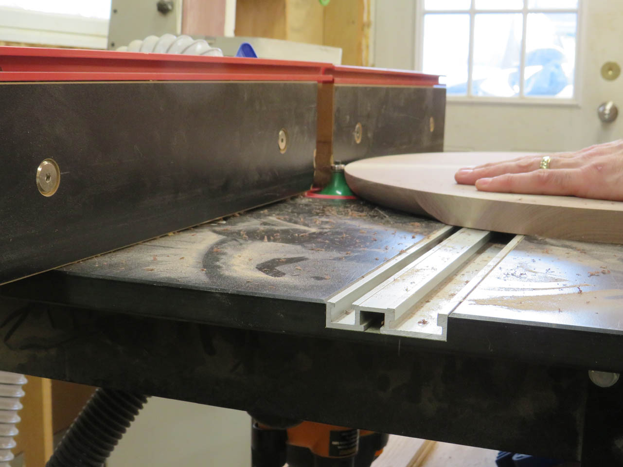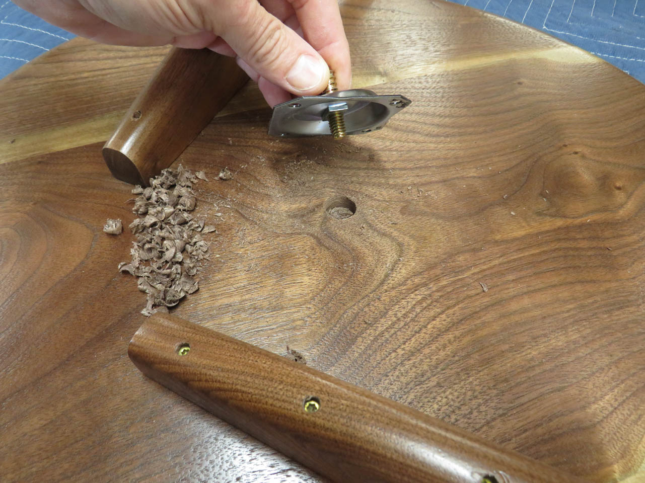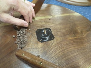 To accommodate this, I drilled a 5/8″ pocket in the center to the circle.