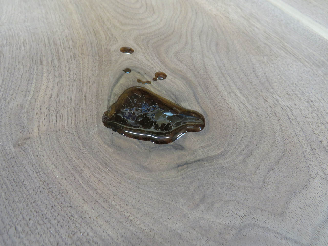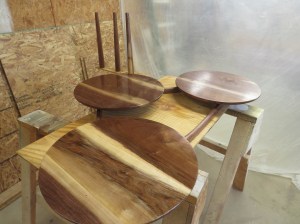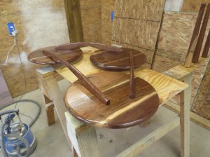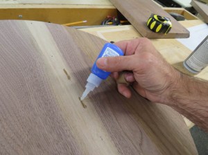 The client likes character in the wood so I left a few powder-post beetle holes visible. I filled these with CA glue so that they would be visible, but smooth and flat as the rest of the table tops.