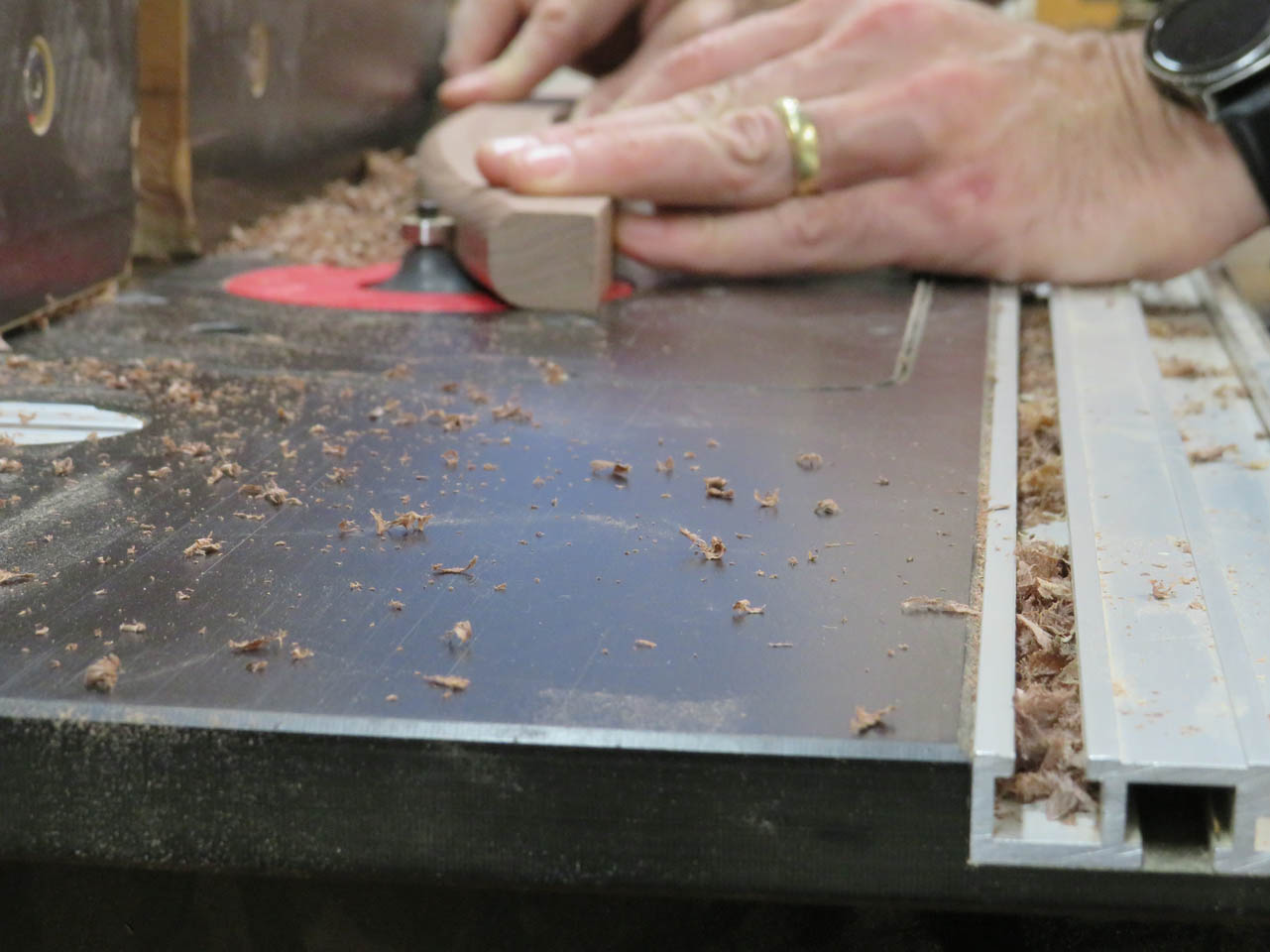 I set a 3/8″ round-over bit in the router table and cut all four sides.