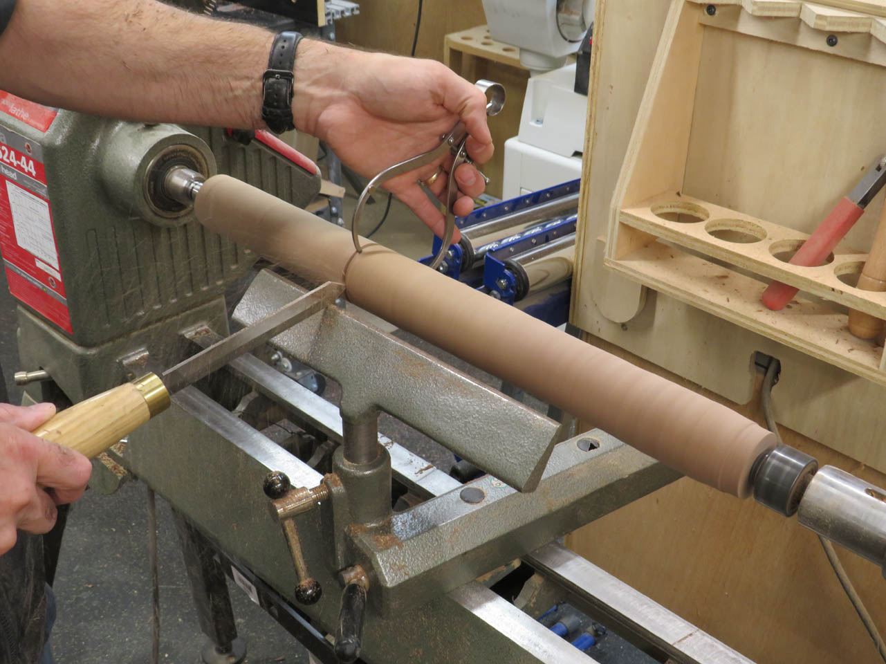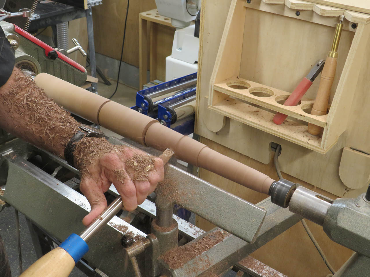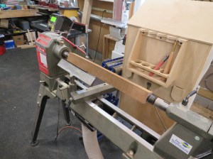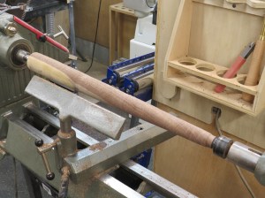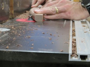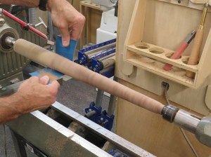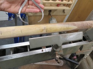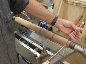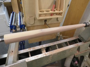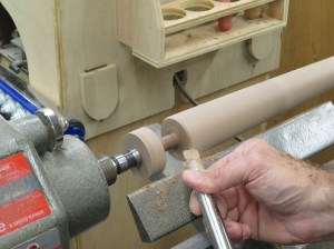Step one was to rough-cut the blocks into 2″ diameter spindles.