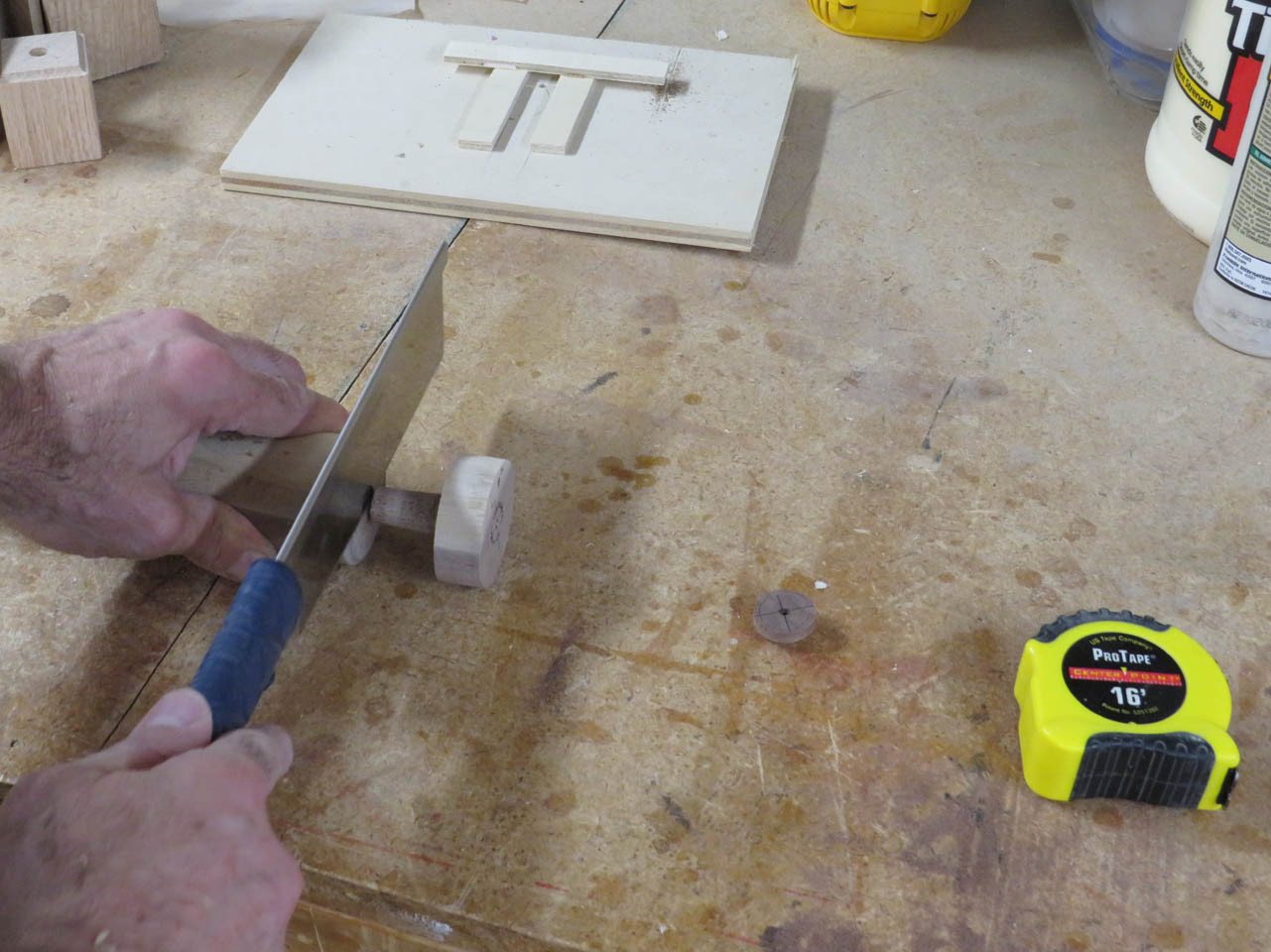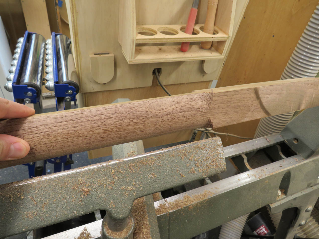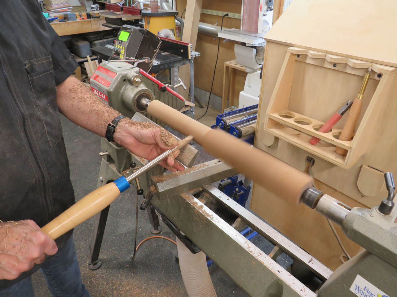 Step one was to rough-cut the blocks into 2″ diameter spindles.