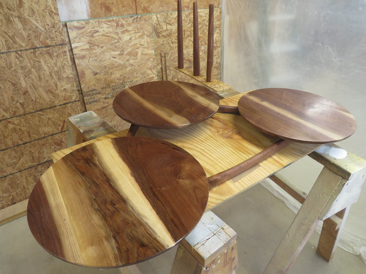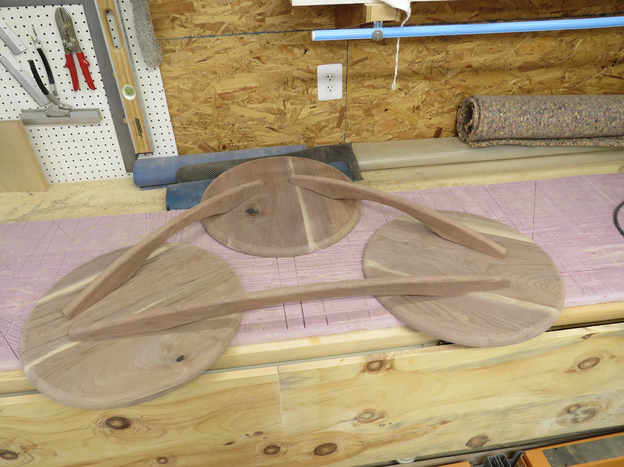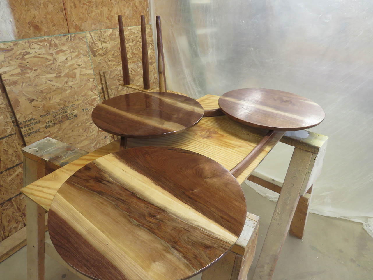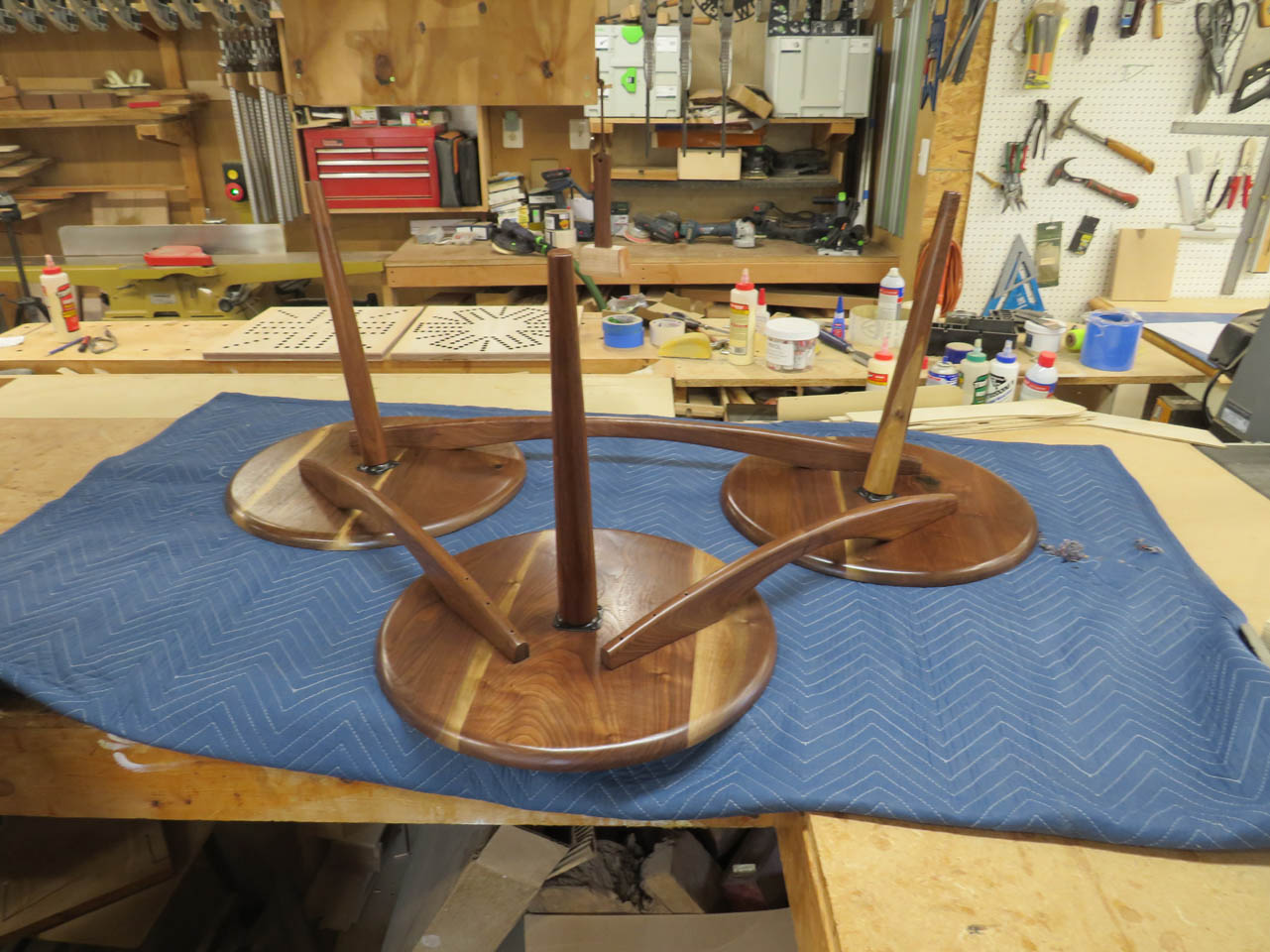 I have a client who asked me if I could build her a coffee table. She really liked the style of this mid-century modern coffee table that had three separate round tops with some interesting curved supports below. The one she found online was close to what she wanted but it was extremely overpriced as well as only 13″ tall.