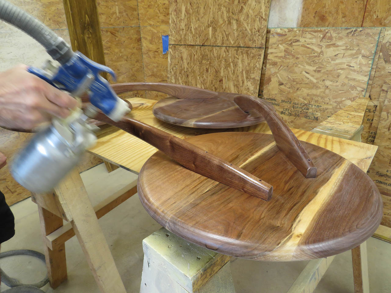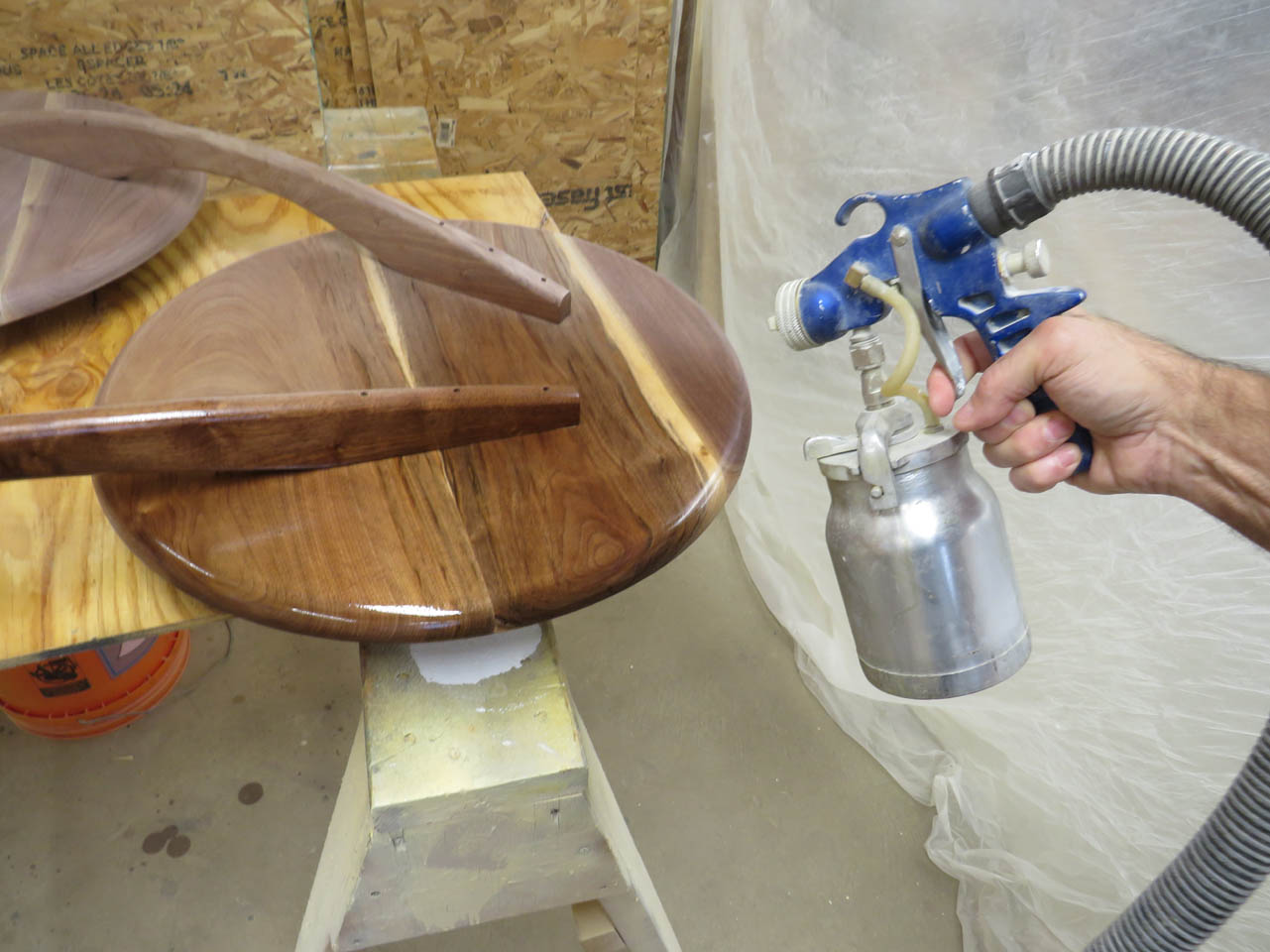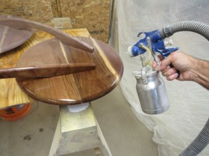 Now, as I sand and spray the top, I can hit the legs as well.